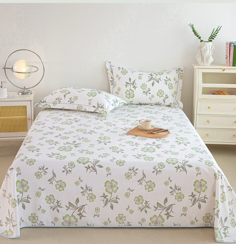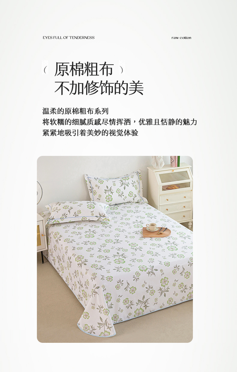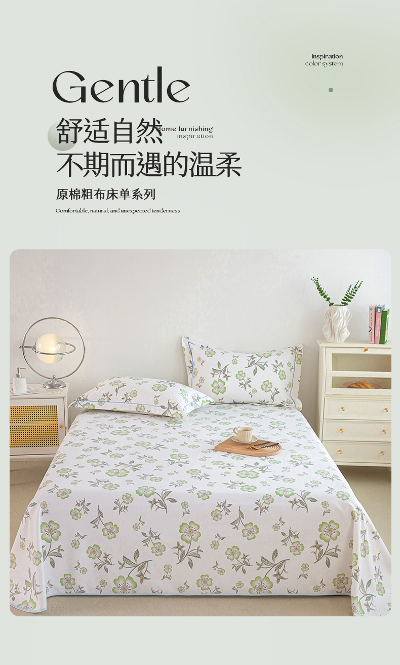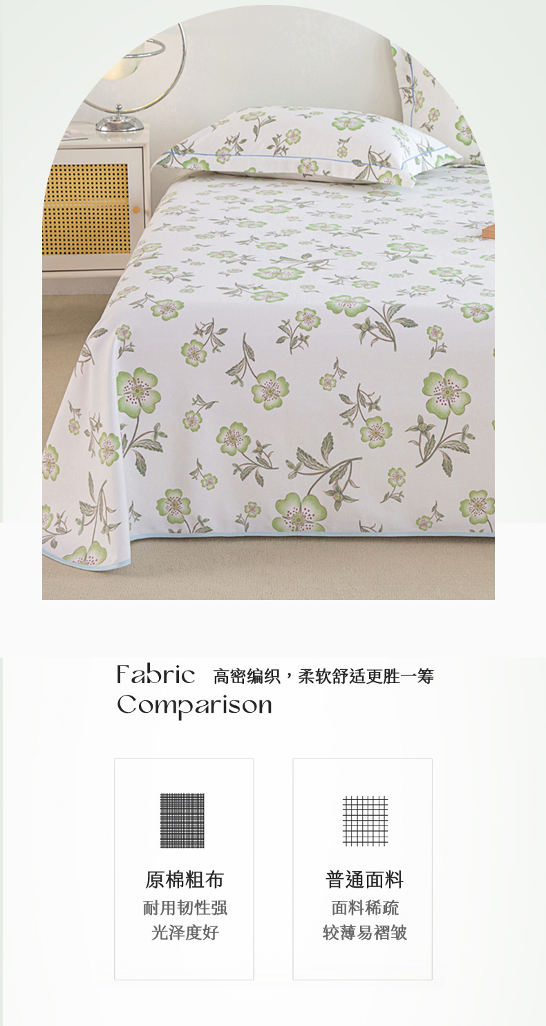 金泰莱 2025新款原棉全棉老粗布凉席三件套全棉床单纯棉床单软凉席 春暖花开-绿