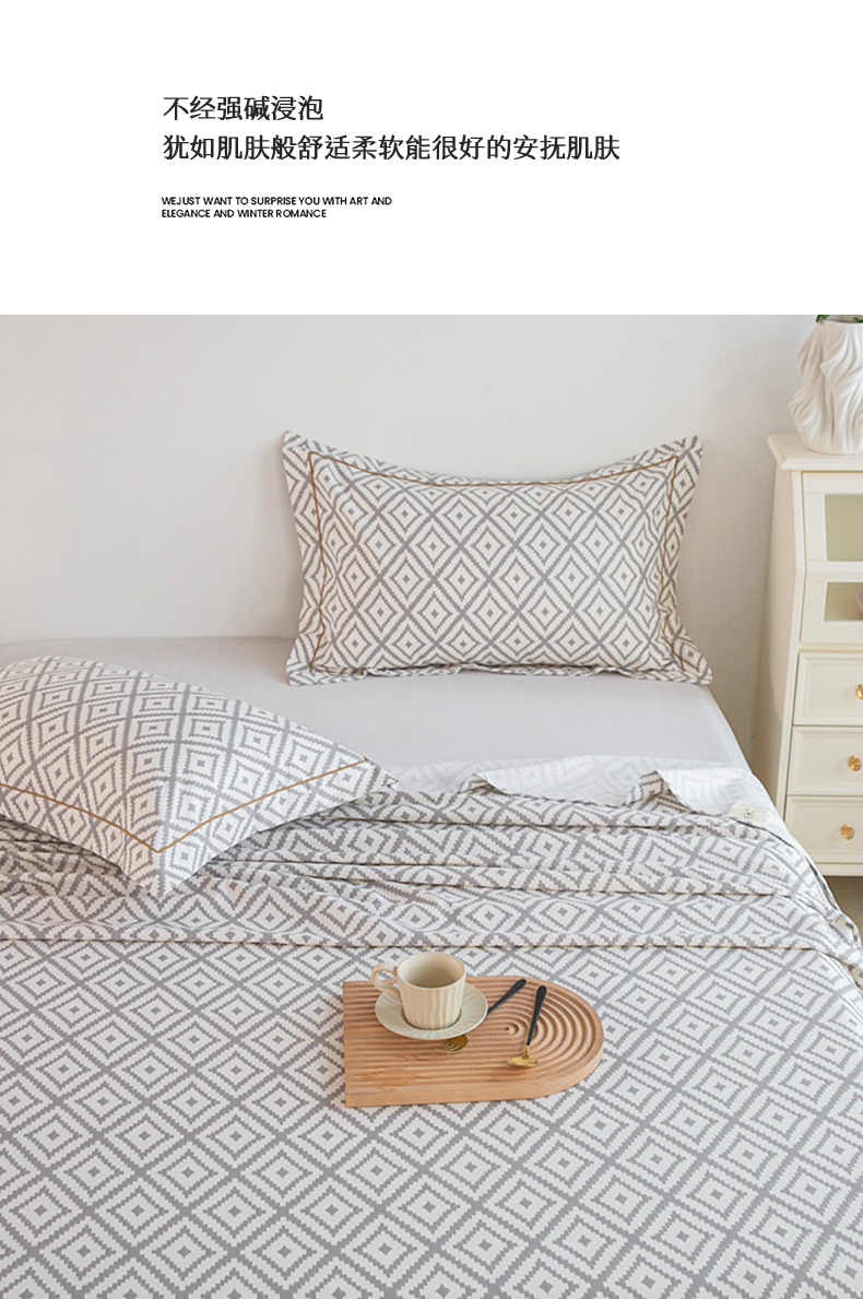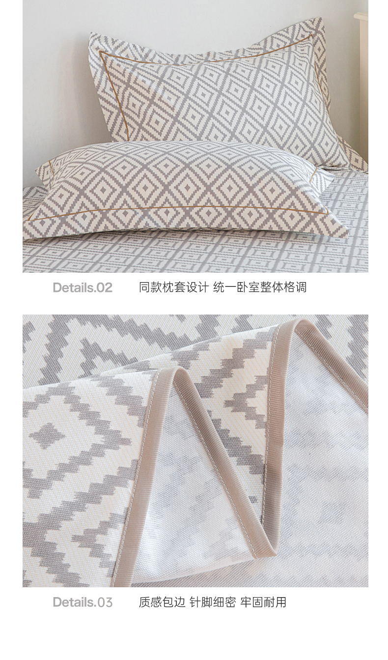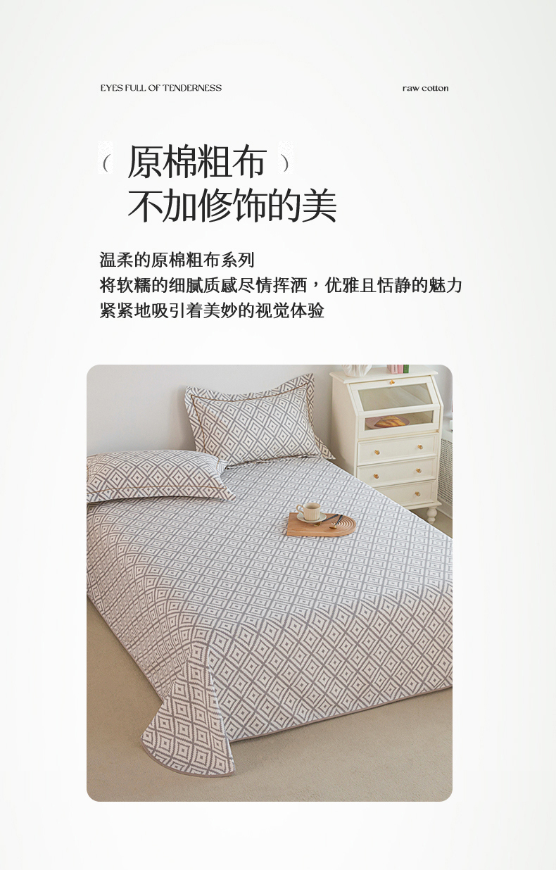 商品名称:金泰莱 2025新款原棉全棉老粗布凉席三件套全棉床单纯棉床单软凉席 时尚格-灰