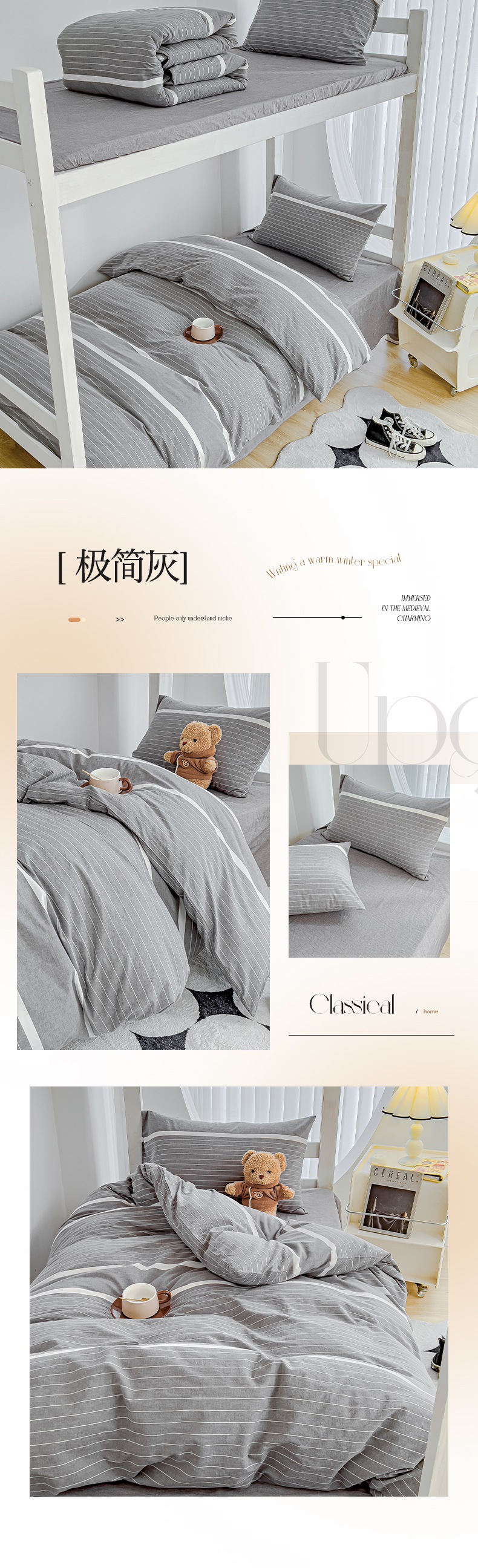 久典家居 2024新款A类全棉学生款三件套 极简灰