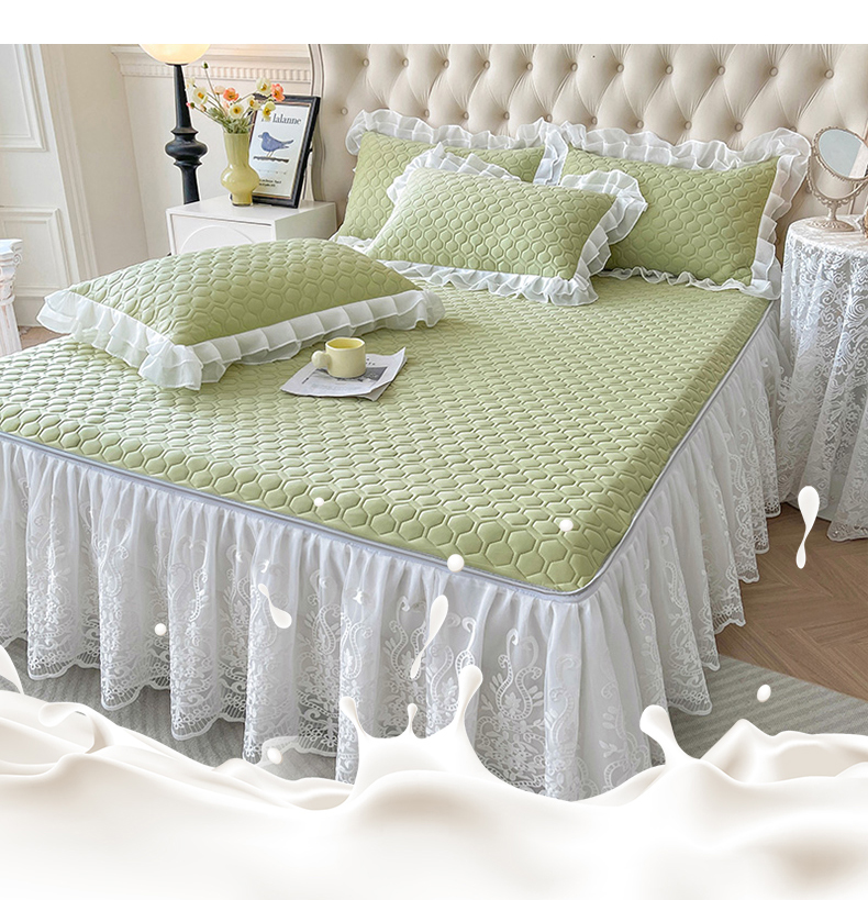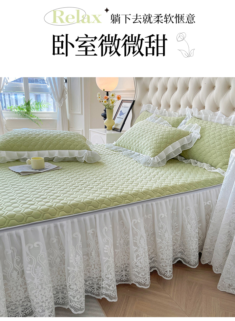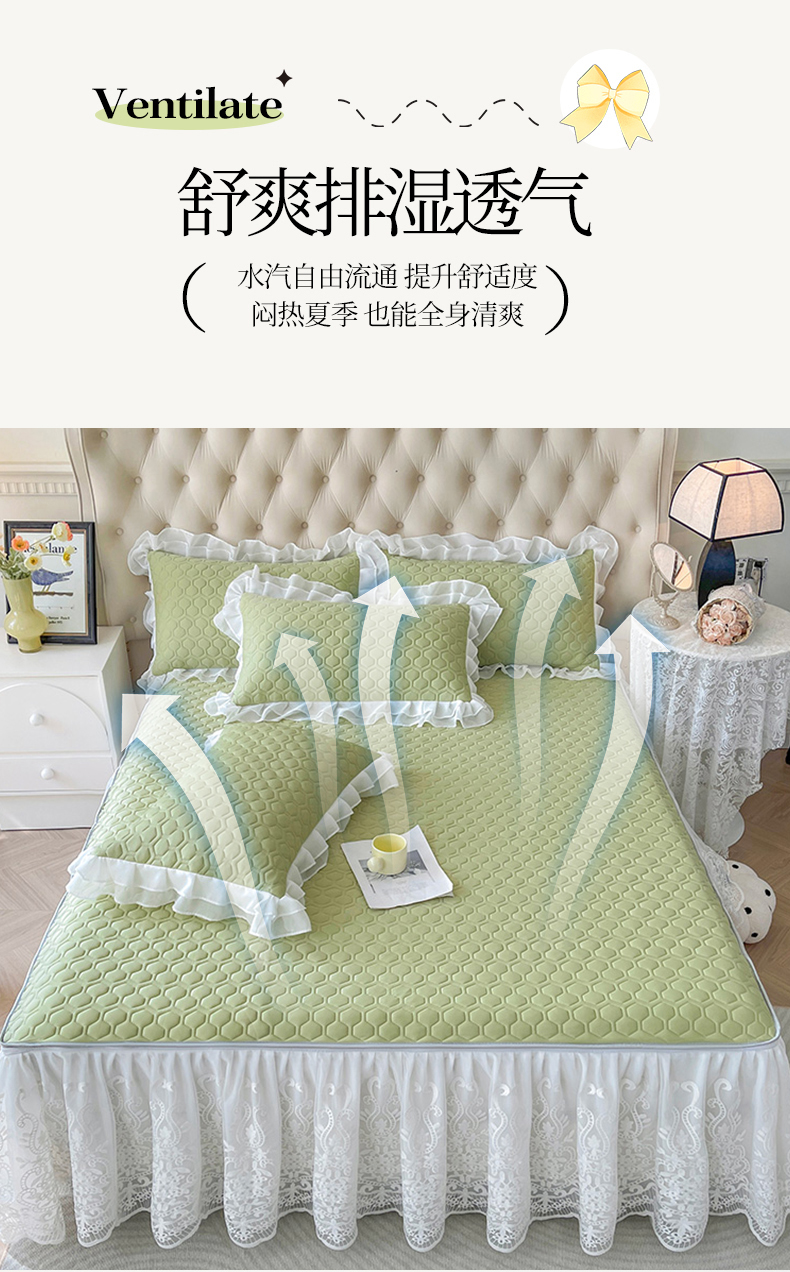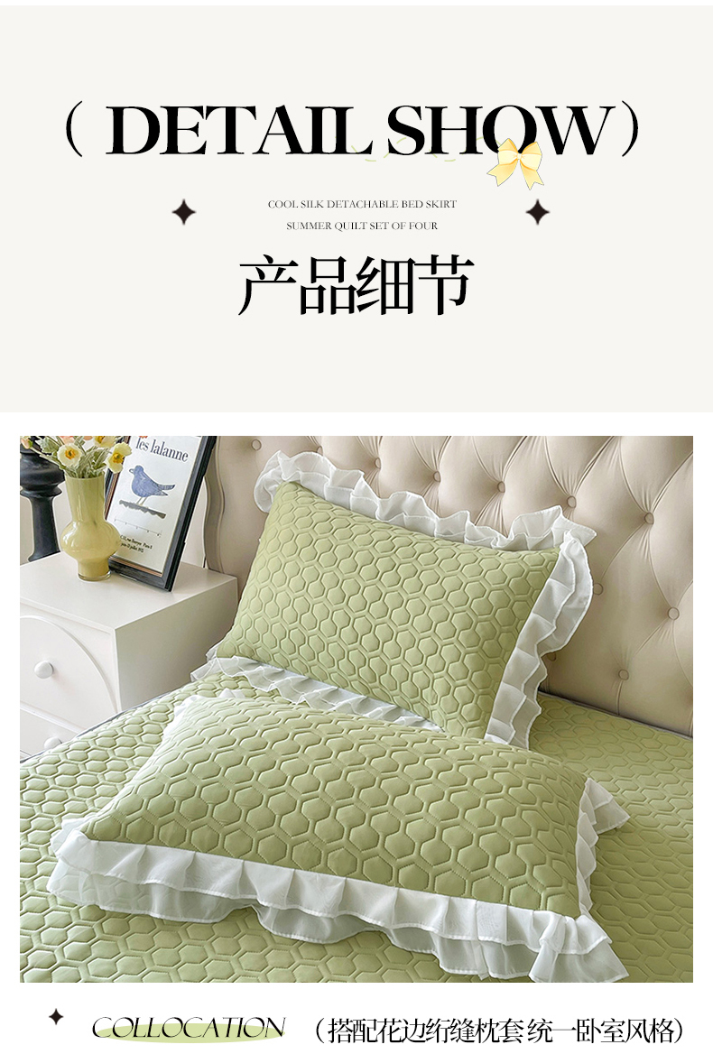 (总)虹星家纺 2025新款A类冰感凉豆豆床裙席三件套-素夏,素夏-抹茶绿,素夏-蜜桃粉,素夏-青果绿,素夏-天空蓝,素夏-月光灰