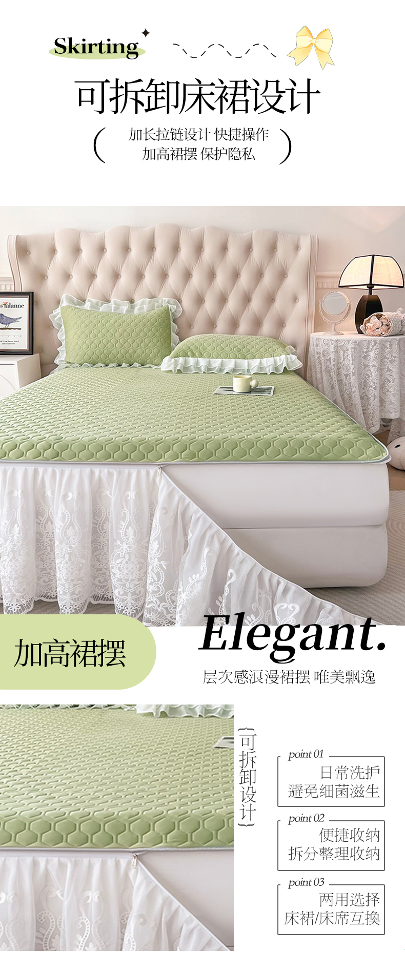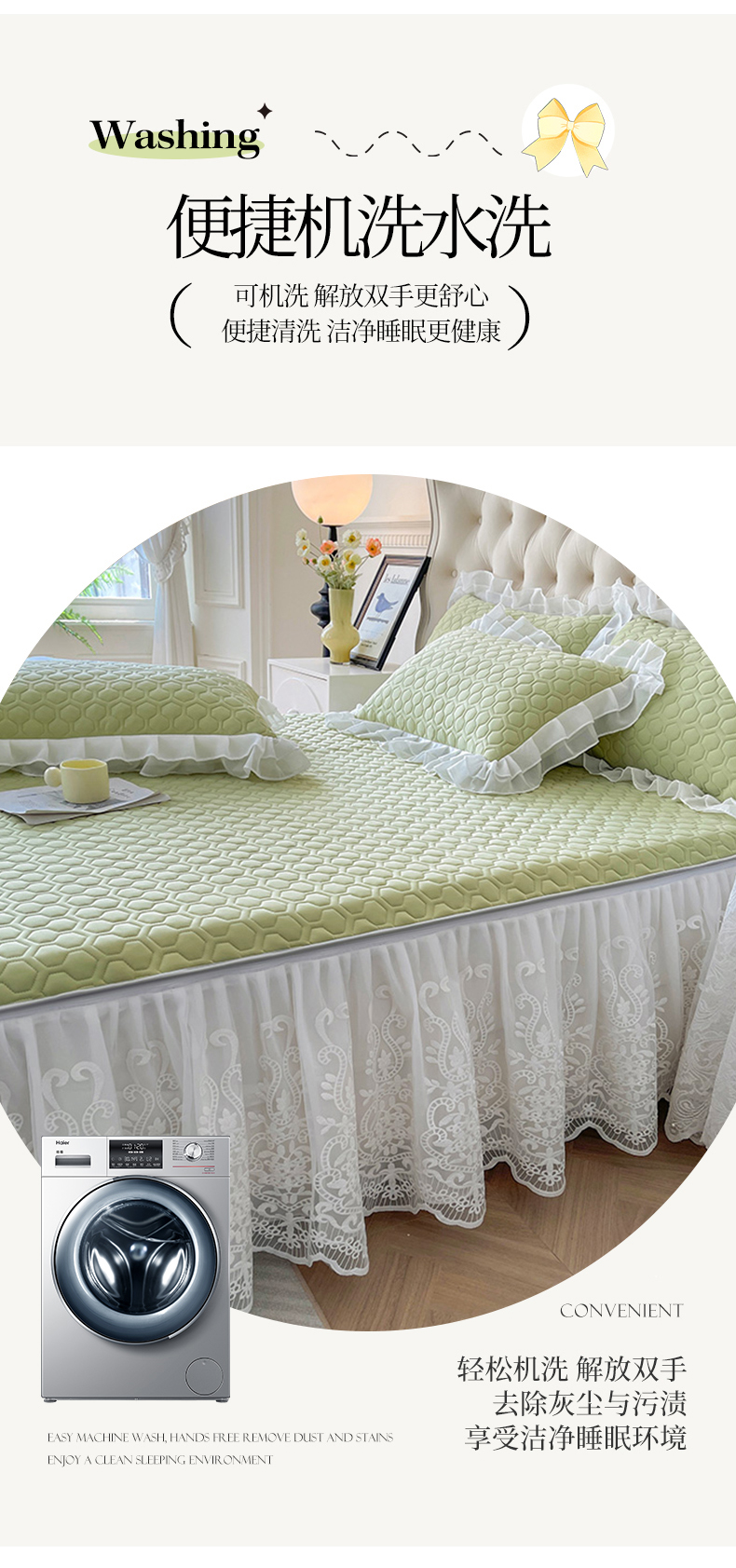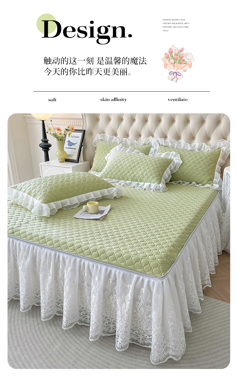 (总)虹星家纺 2025新款A类冰感凉豆豆床裙席三件套-素夏,素夏-抹茶绿,素夏-蜜桃粉,素夏-青果绿,素夏-天空蓝,素夏-月光灰