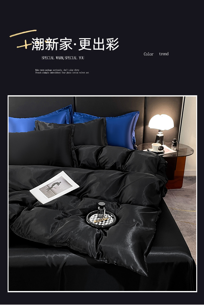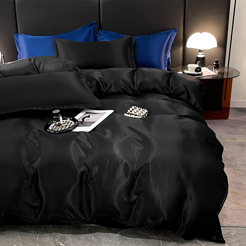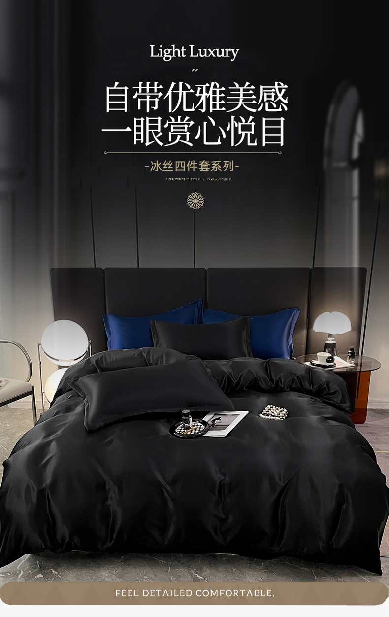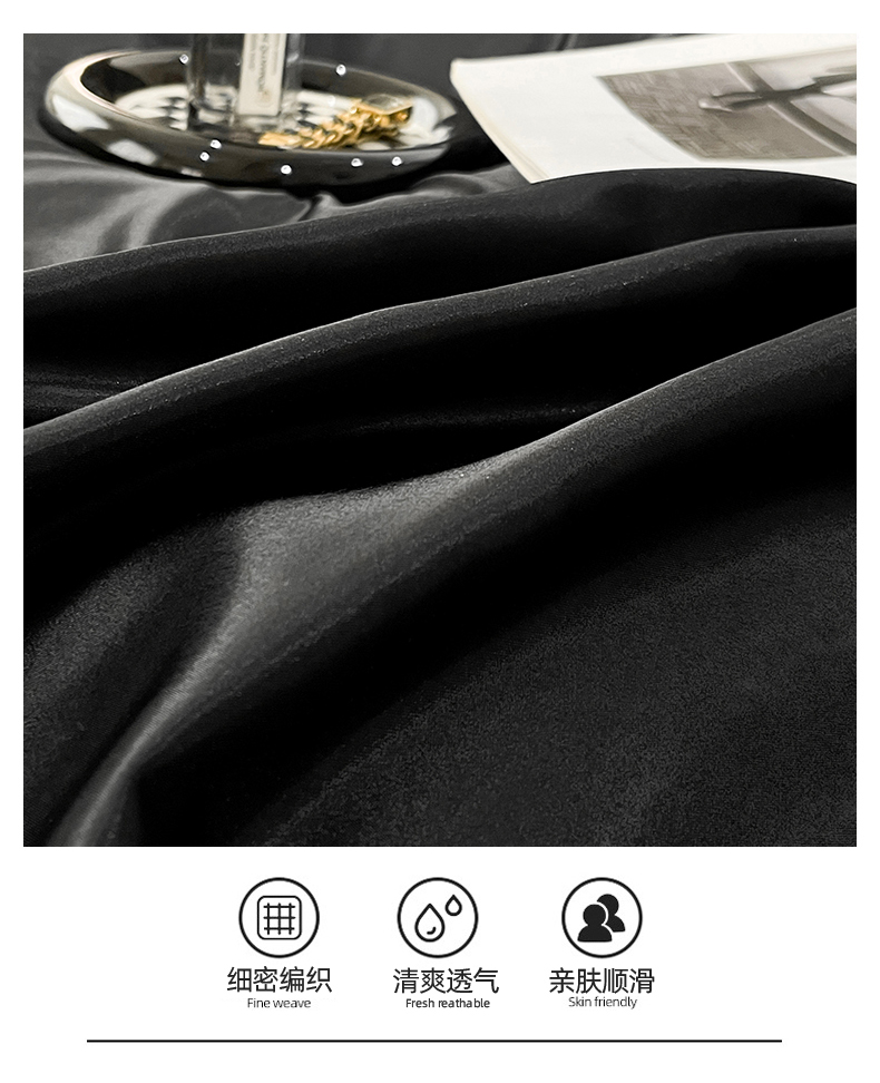 当前位置: 91家纺网 > 商品网购 > 床品套件 > 四件套 > 其它四件套 > 梦舒羽 2025新款可水洗冰丝被套床单枕套夏季四件套 尊贵黑