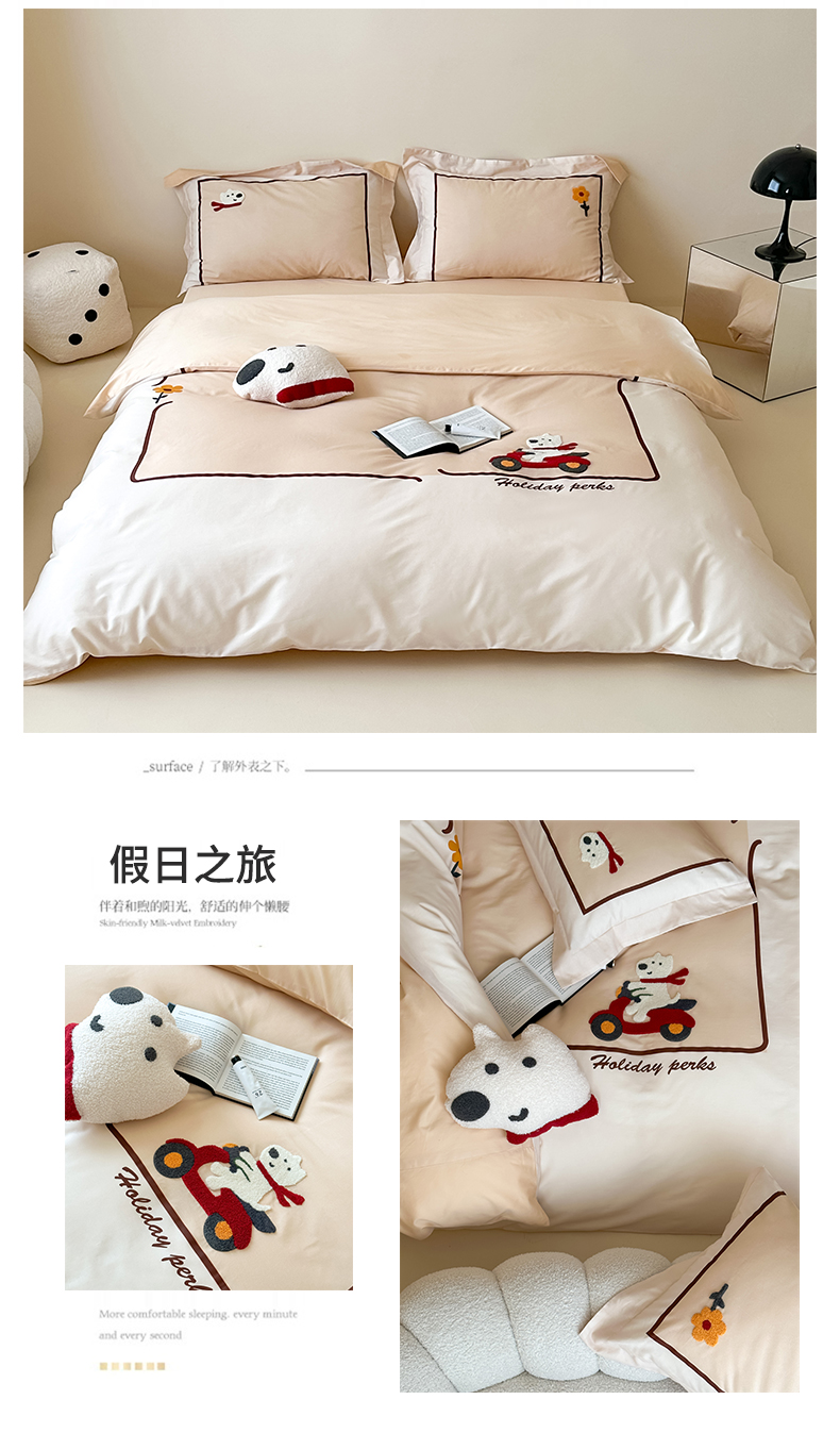 名品优仓 2024新款大版数码印花定位水洗棉四件套系列 假日之旅