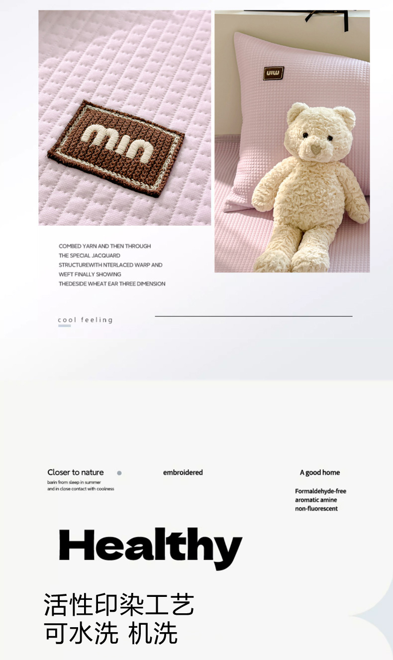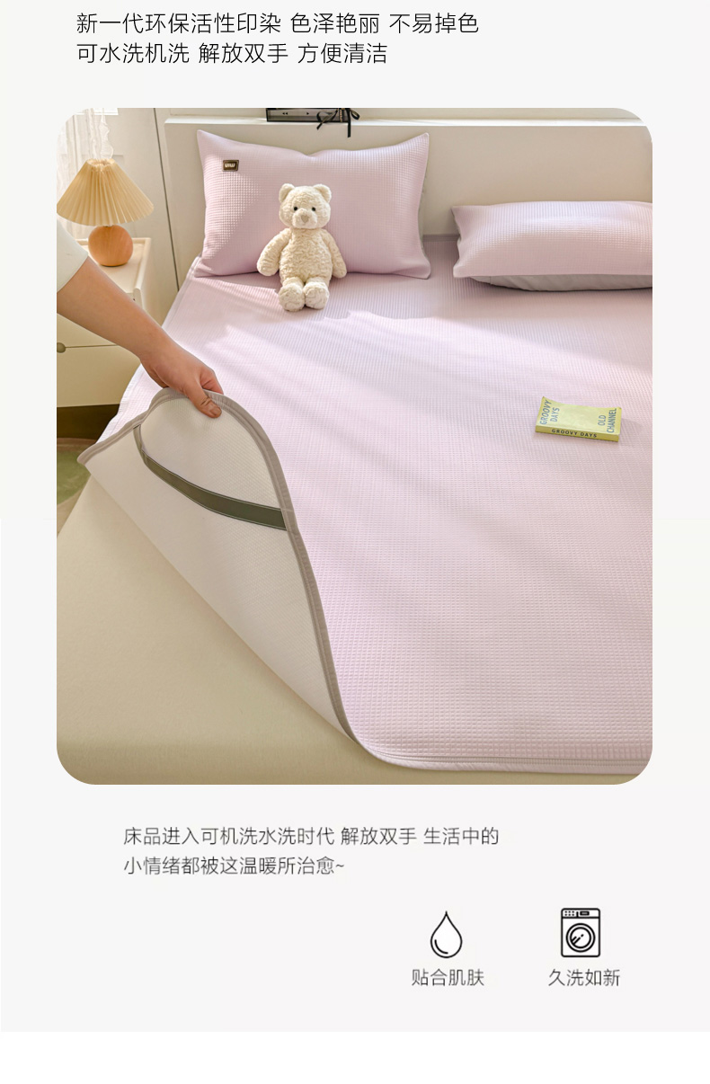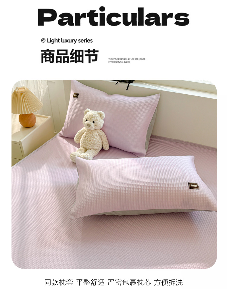 (总)慕澄家纺 2022新款华夫格简约款泡泡四件套,湖水绿,魅惑紫,奶白色,奶黄色,浅豆沙,情调灰,天空蓝,樱花粉