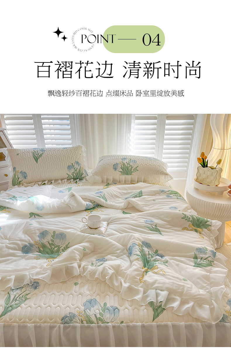 慕澄家纺 2024新款时尚印花泡泡棉花边夏被夏凉被空调被 夏被-叶苏,夏被-叶苏