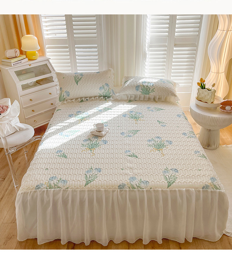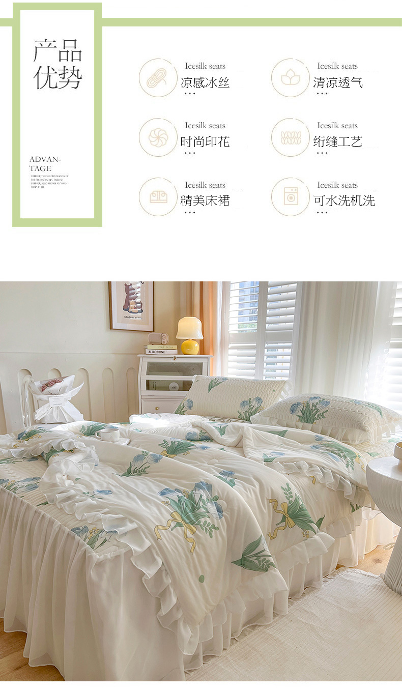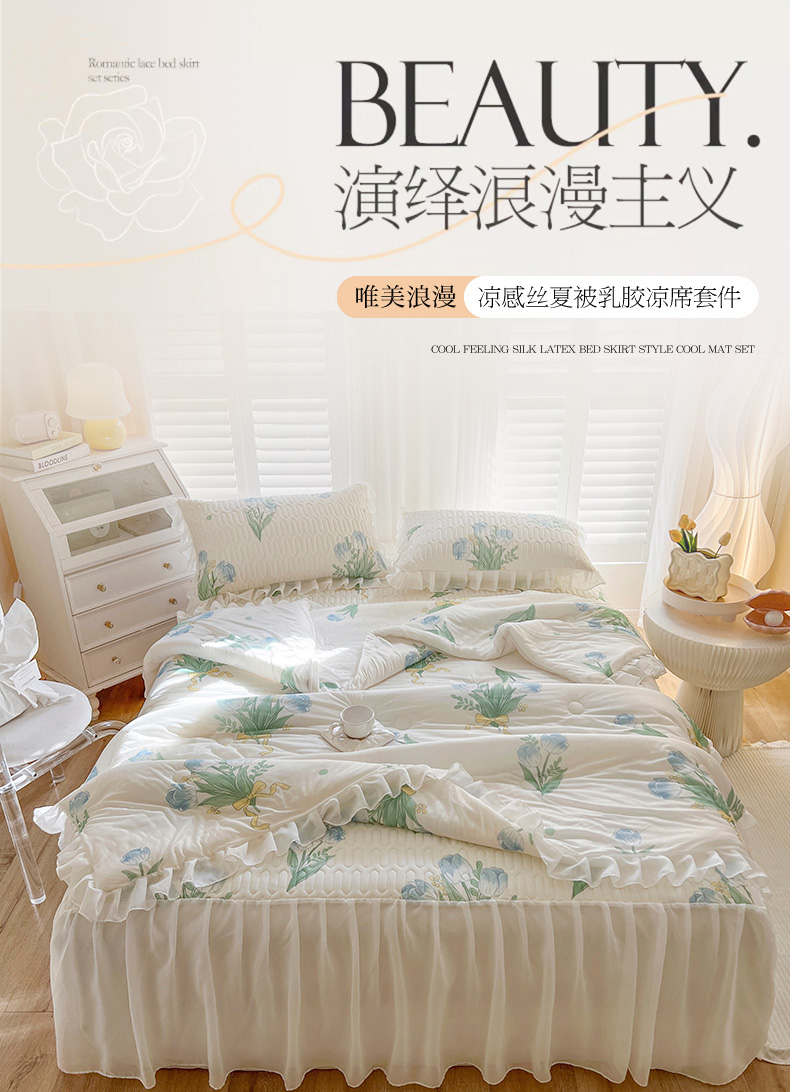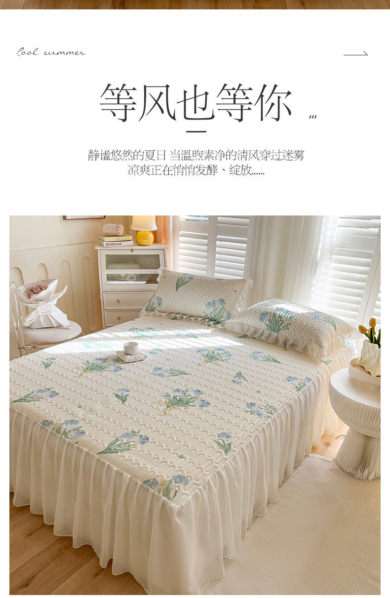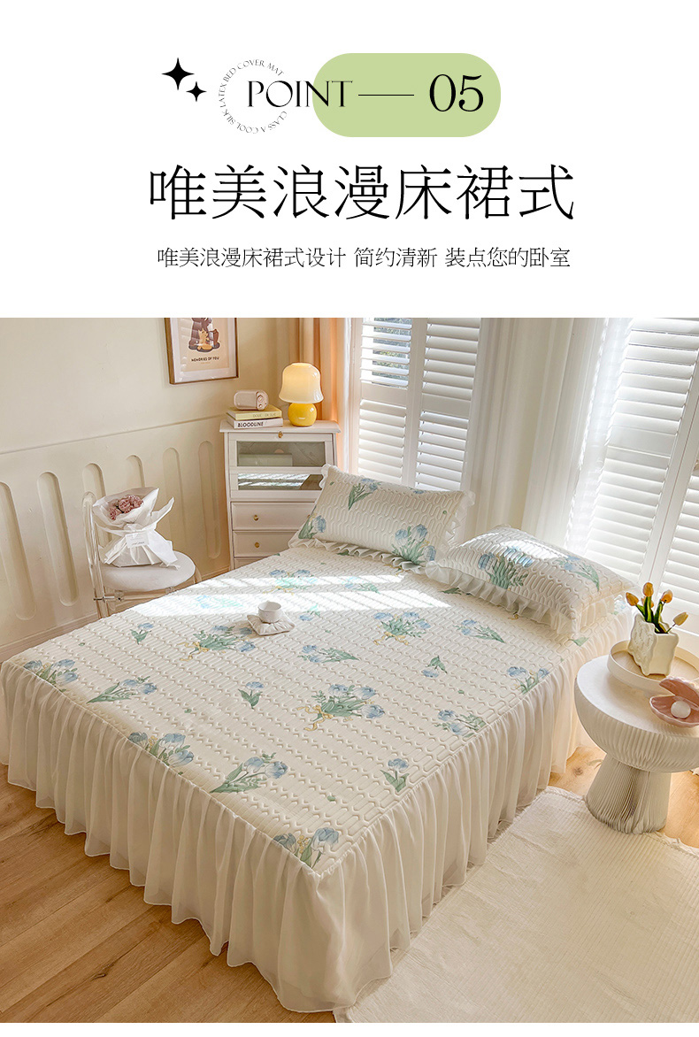 慕澄家纺 2024新款小版印花床裙款乳胶凉席三件套 床裙款-祈愿