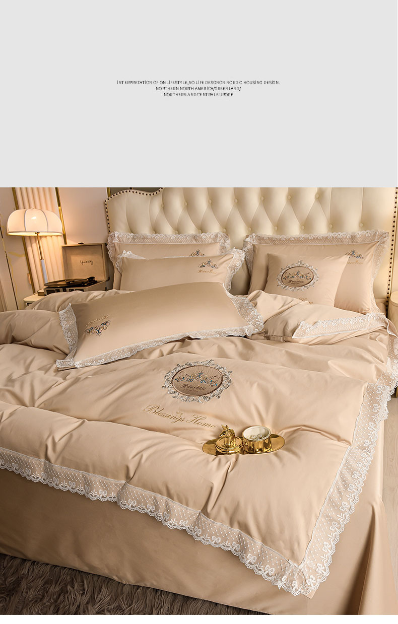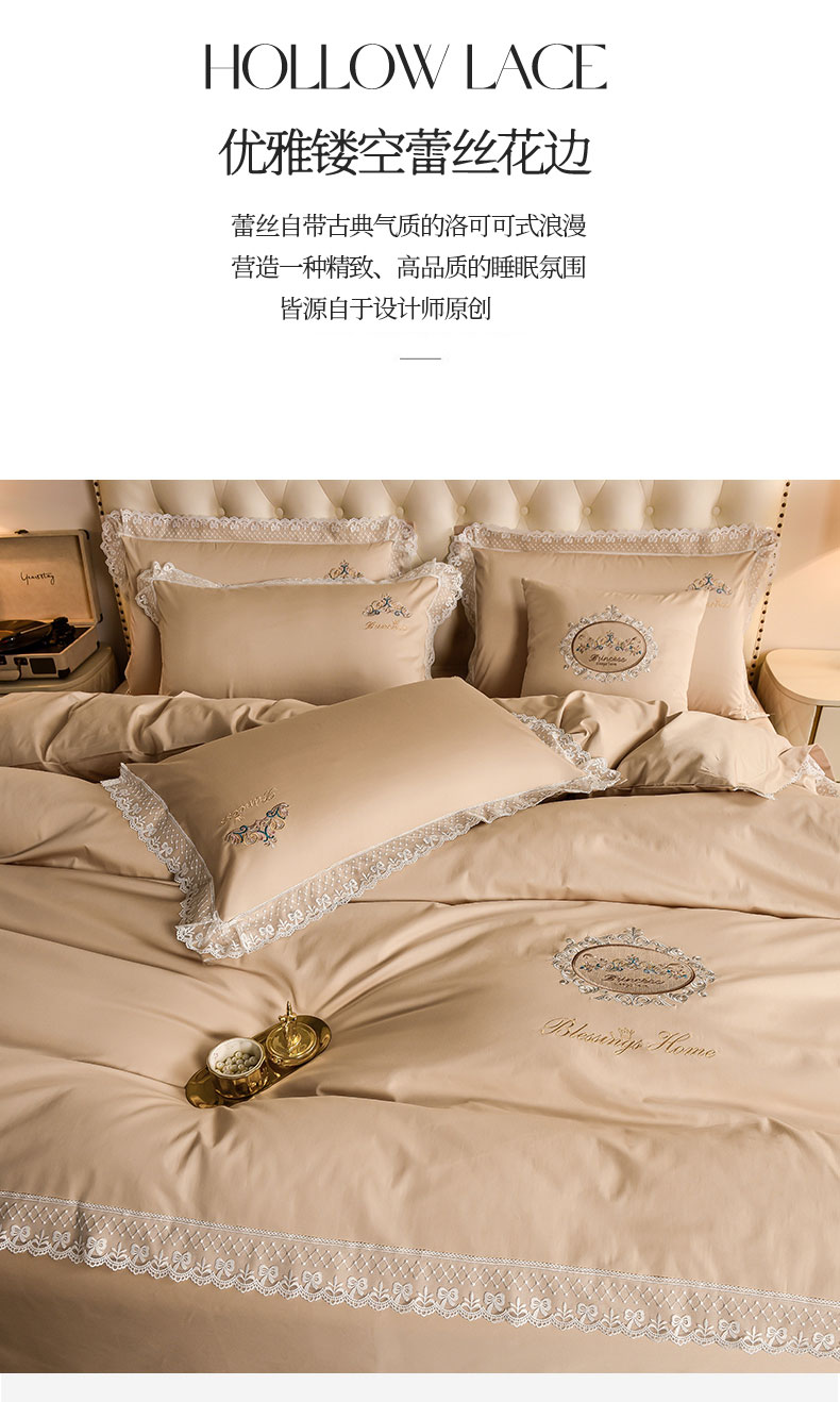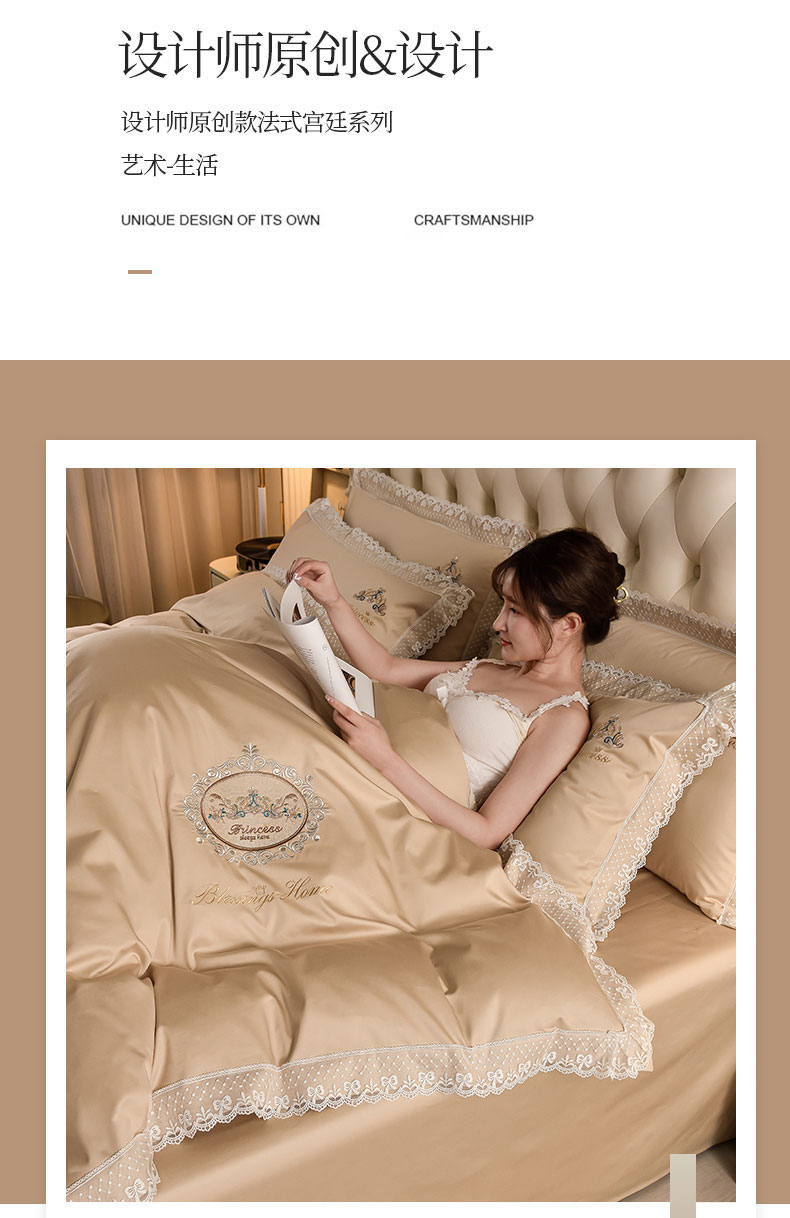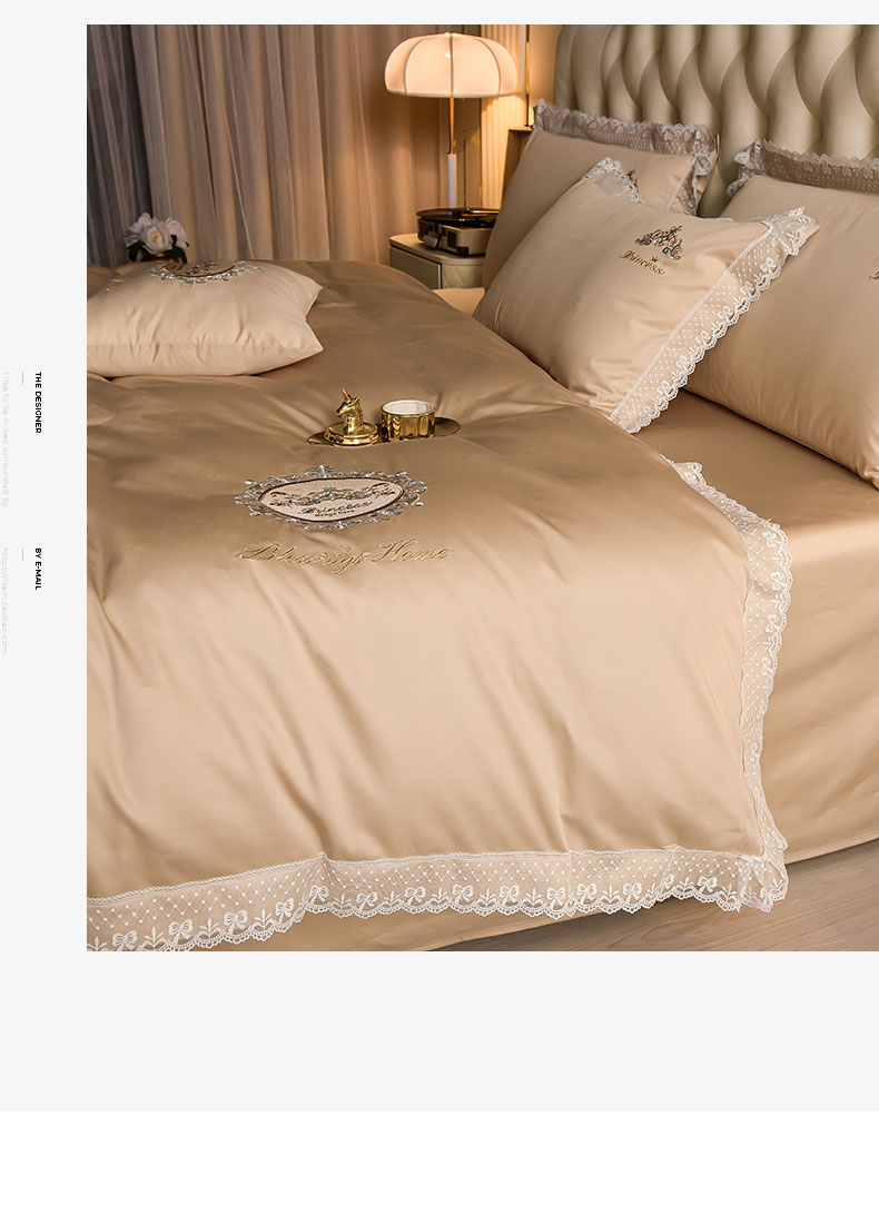 瑞驰家纺 2024新款长绒棉爱丽丝公主四件套系列 精美法式轻奢风四件套系列 爱丽丝公主-香槟金
