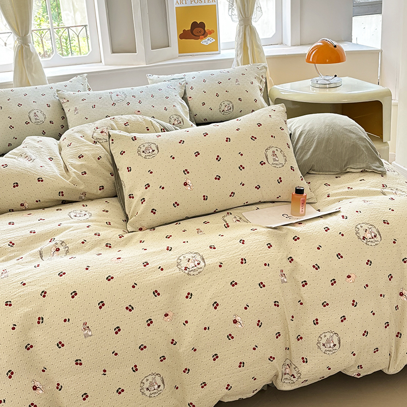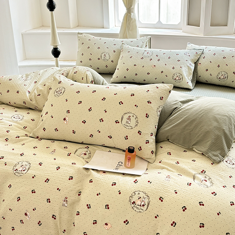 商品名称:满座家居 2025新款亲肤舒适小清新泡泡棉提花床盖四件套 小樱桃