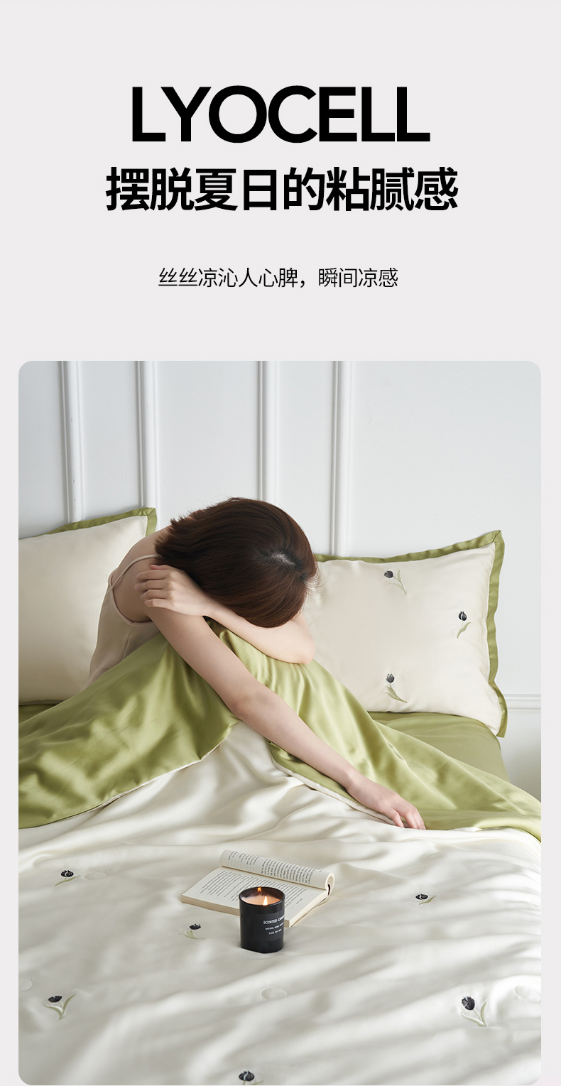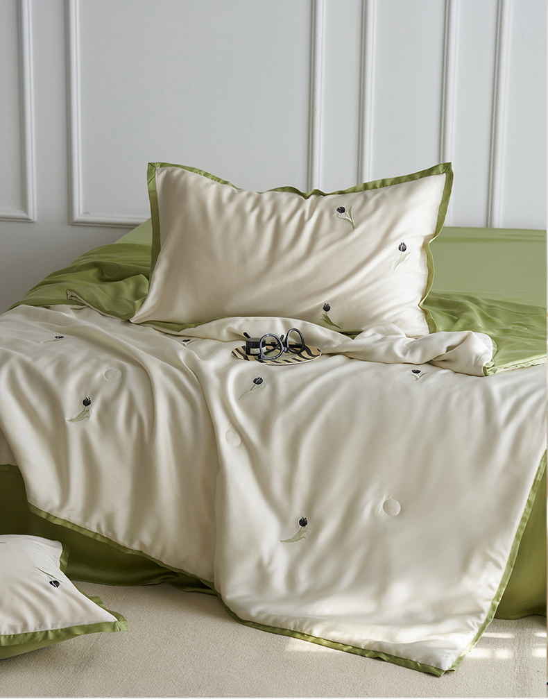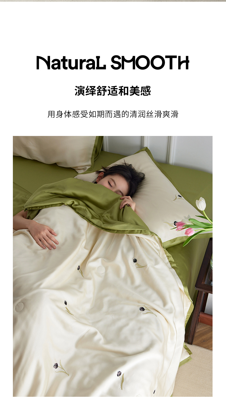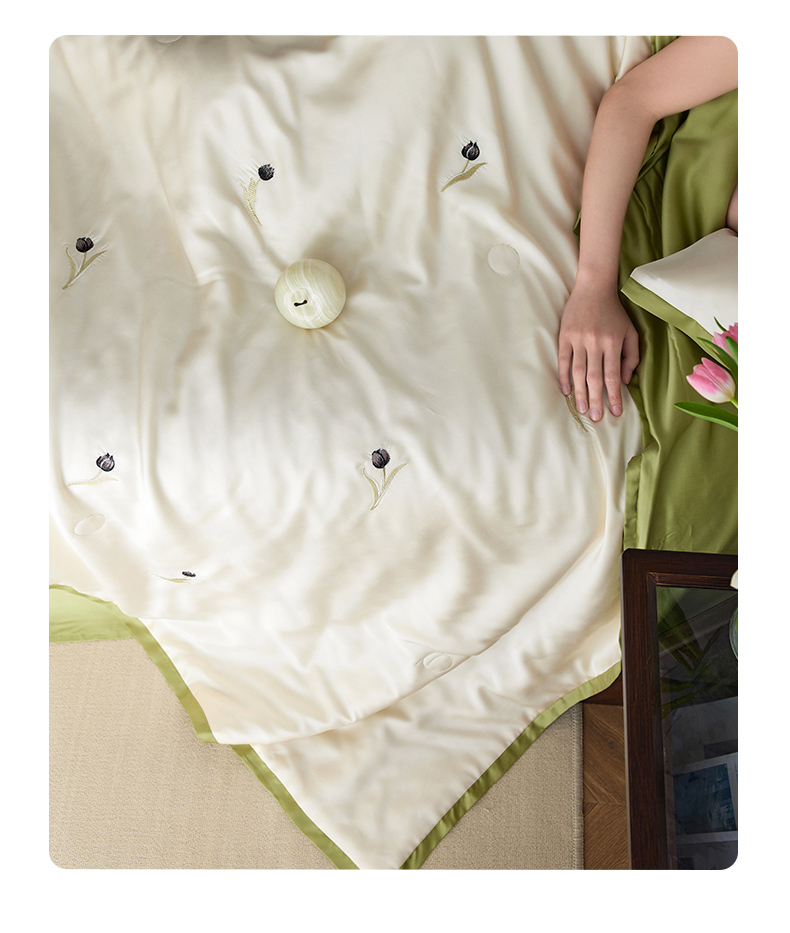 • 91家纺网 家纺一手货源 找家纺 风向标 2024新款50s莱赛尔天丝大豆夏被(拼边款) 夏被-郁金香