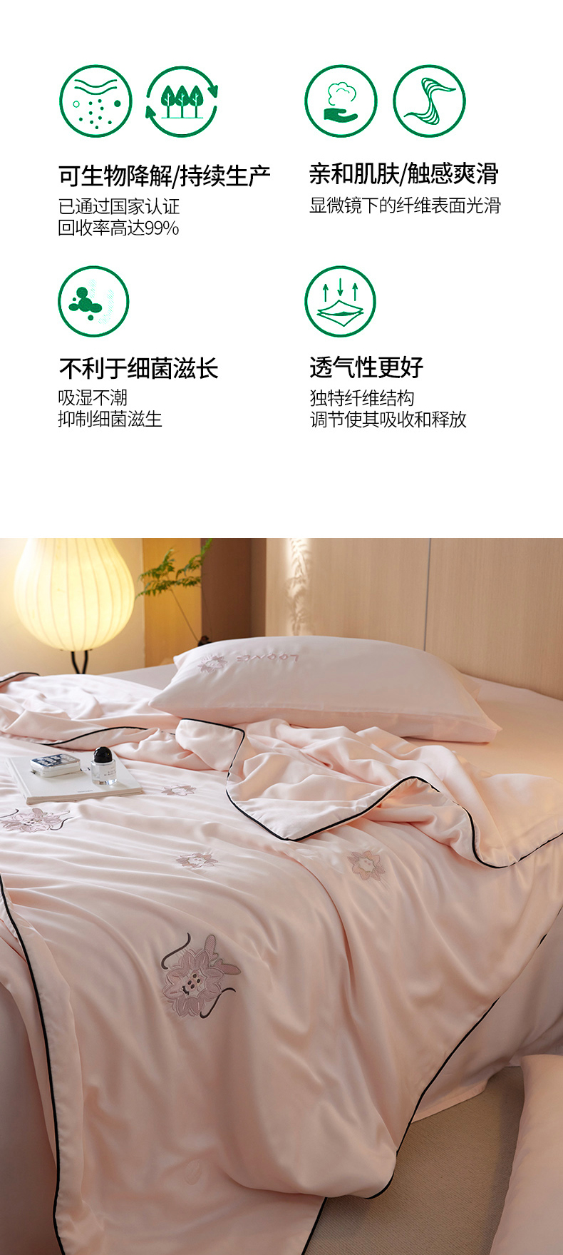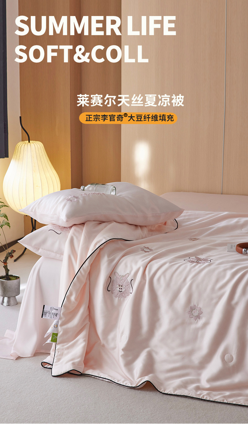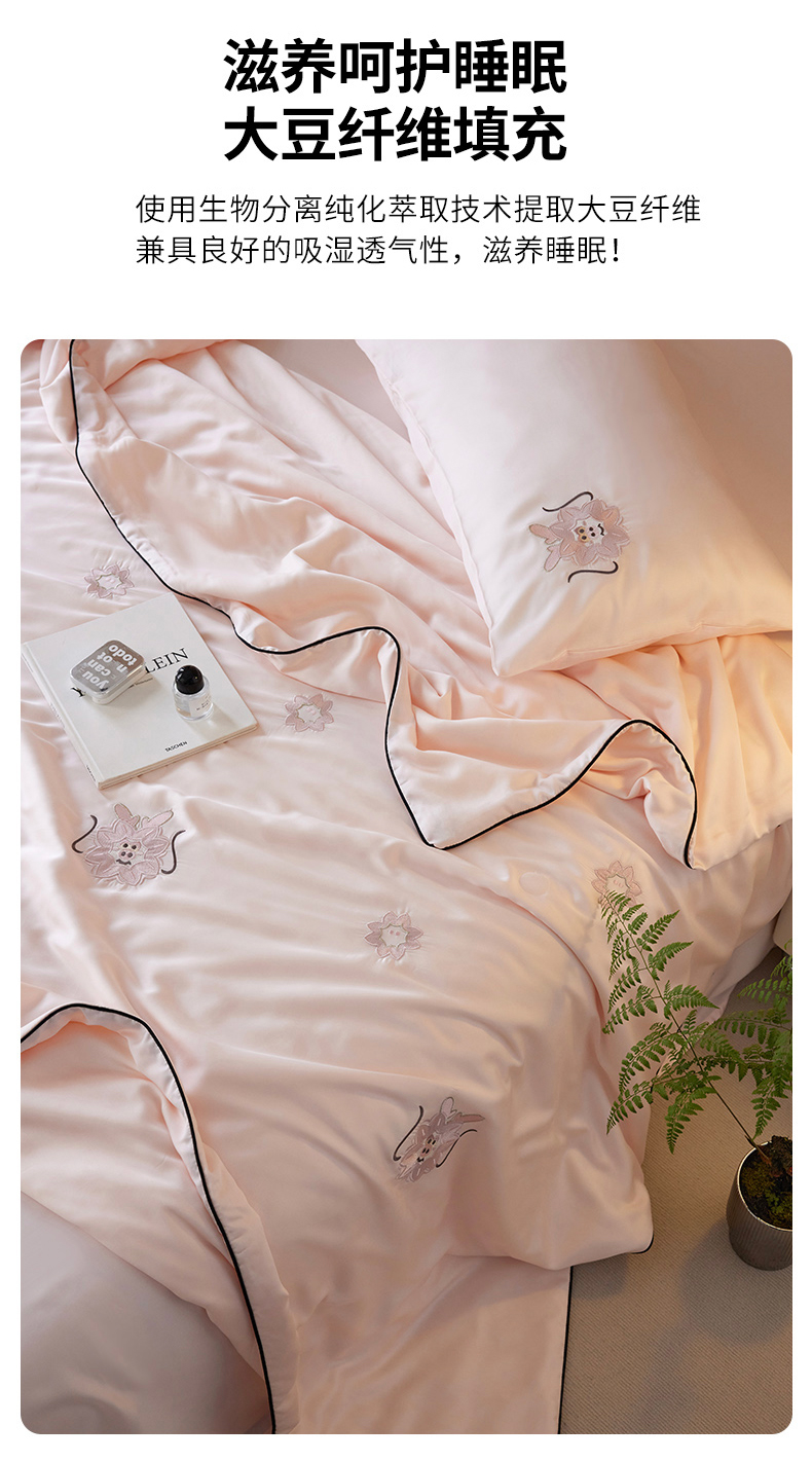 • 91家纺网 家纺一手货源 找家纺 风向标 2024新款50s莱赛尔天丝大豆夏被(嵌绳款) 夏被-桃运龙