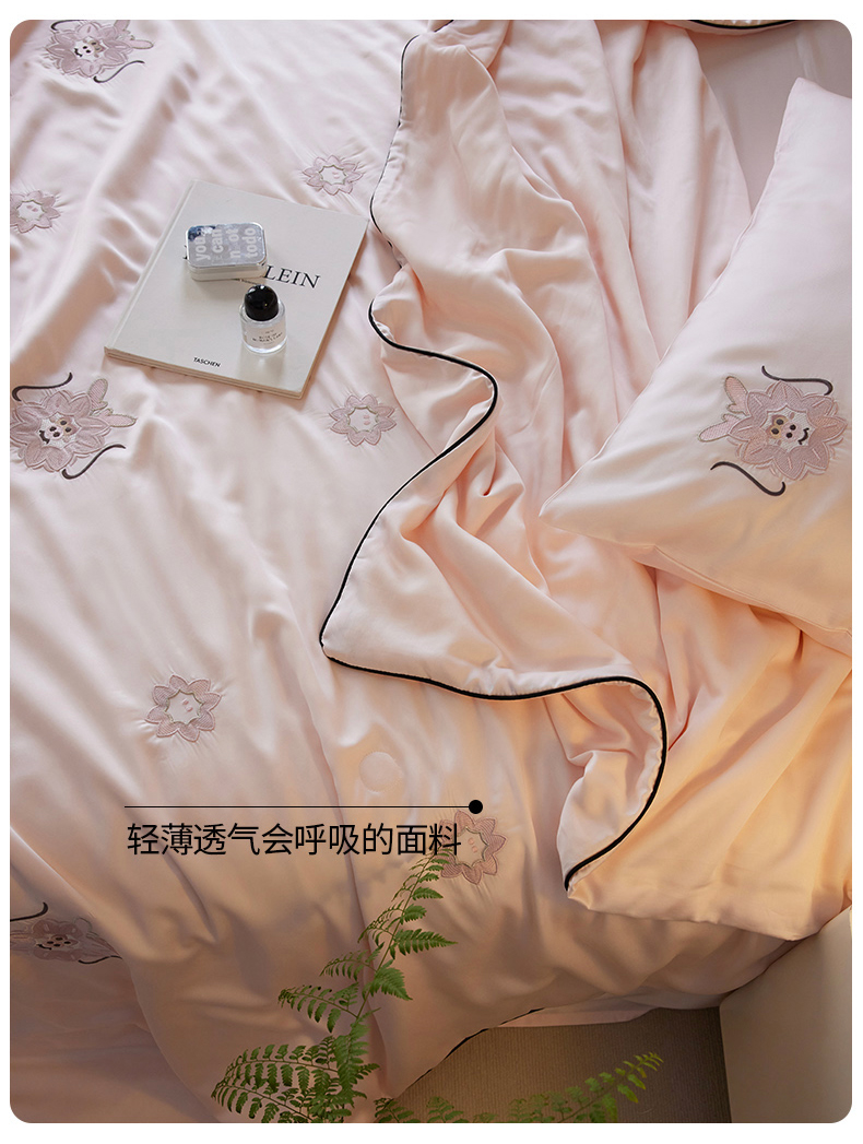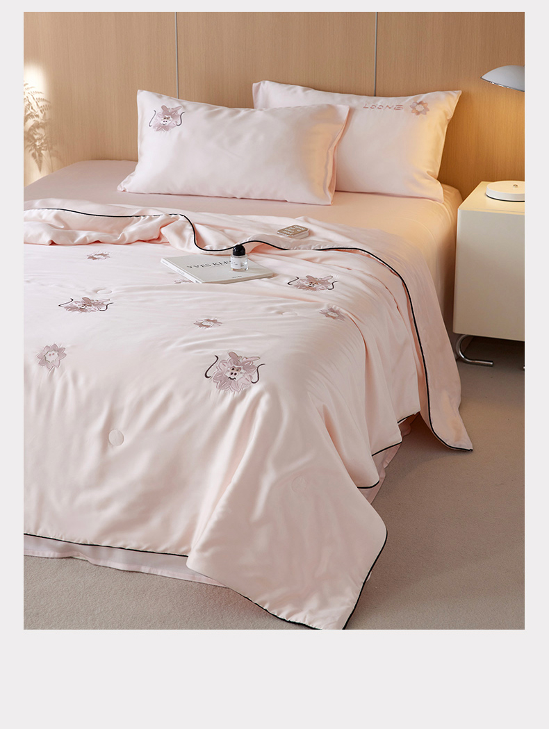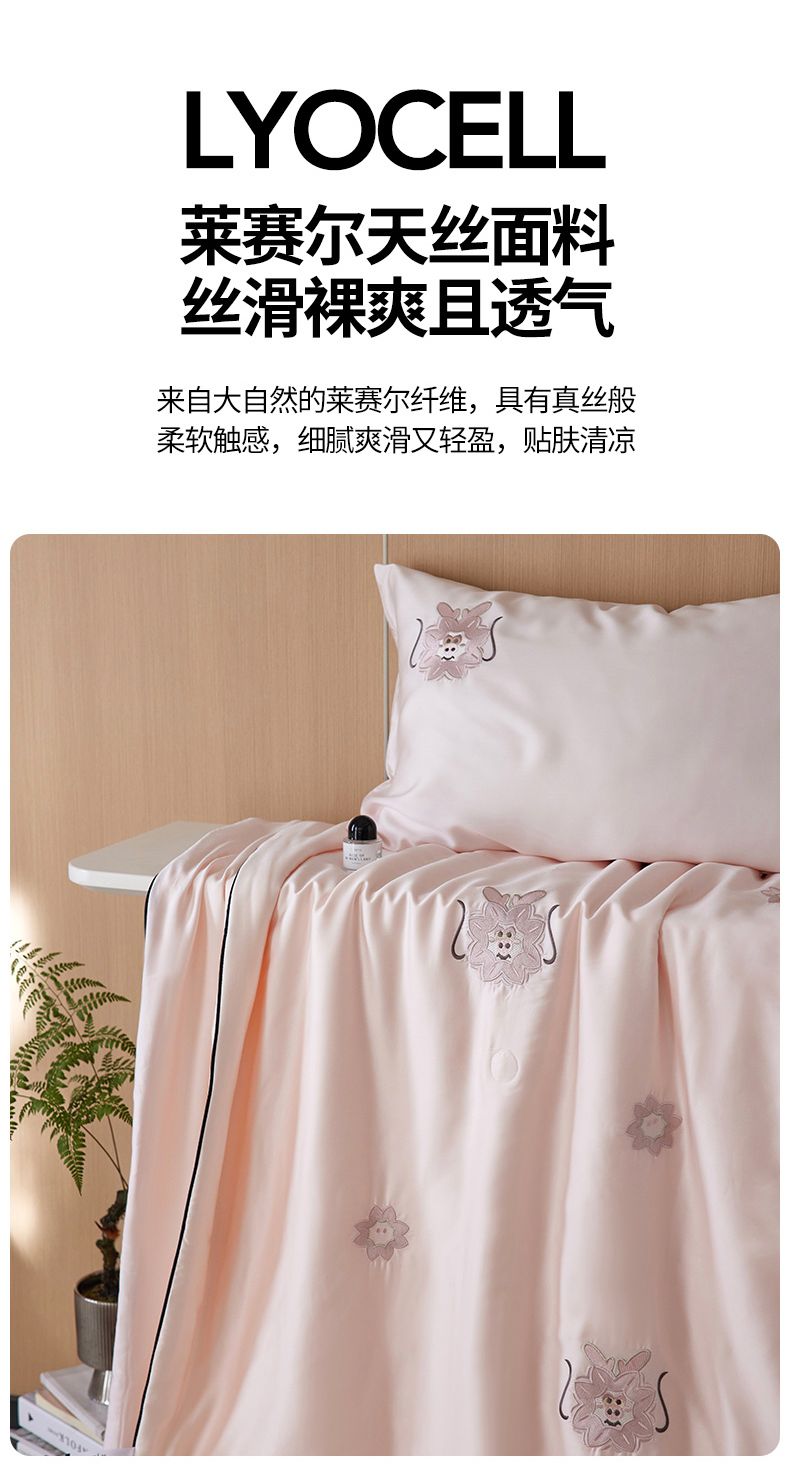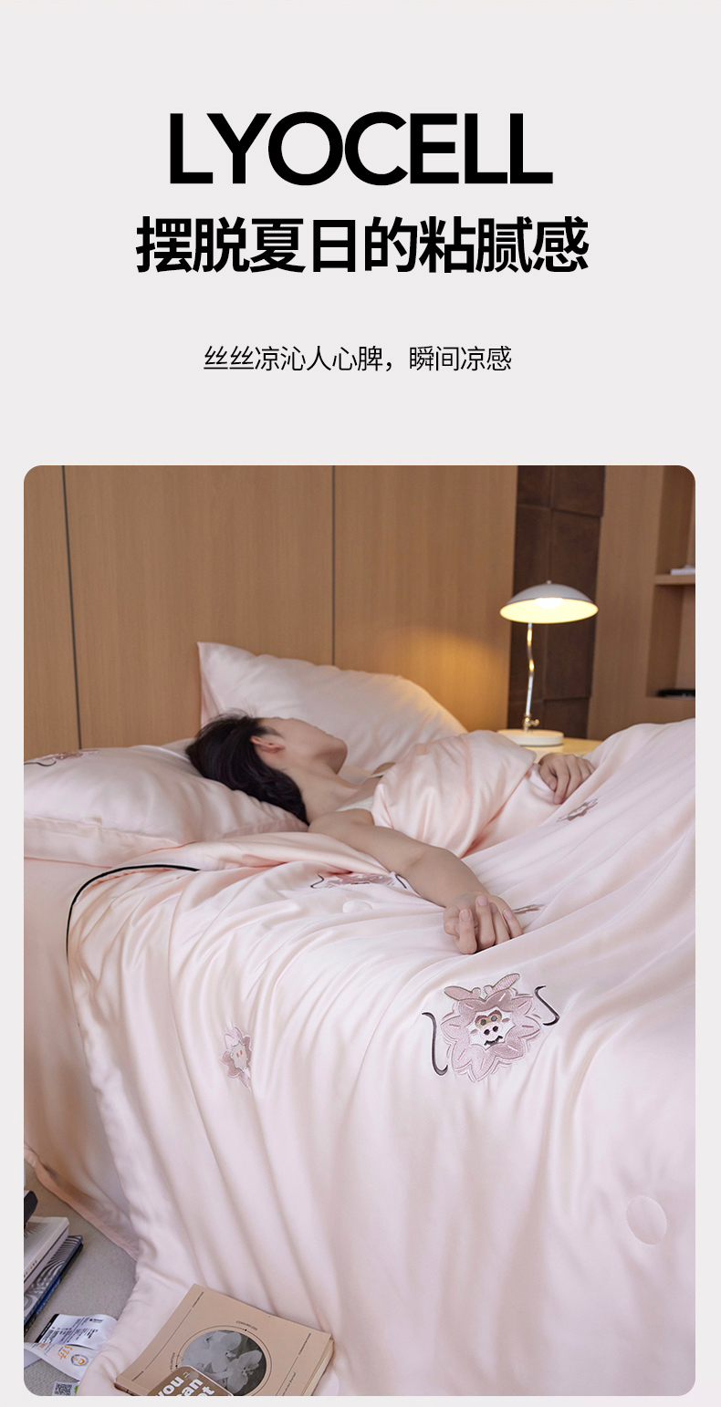 • 91家纺网 家纺一手货源 找家纺 风向标 2024新款50s莱赛尔天丝大豆夏被(嵌绳款) 夏被-桃运龙