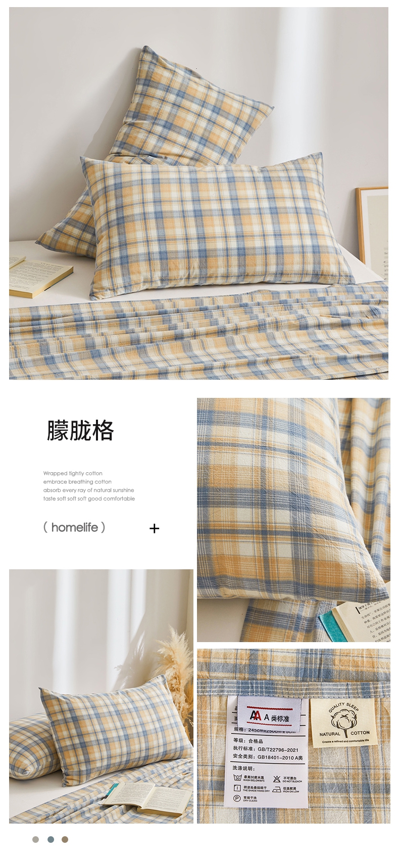 商品名称:雅萱家纺 2024新款A类色织全棉水洗棉单枕套 朦胧格