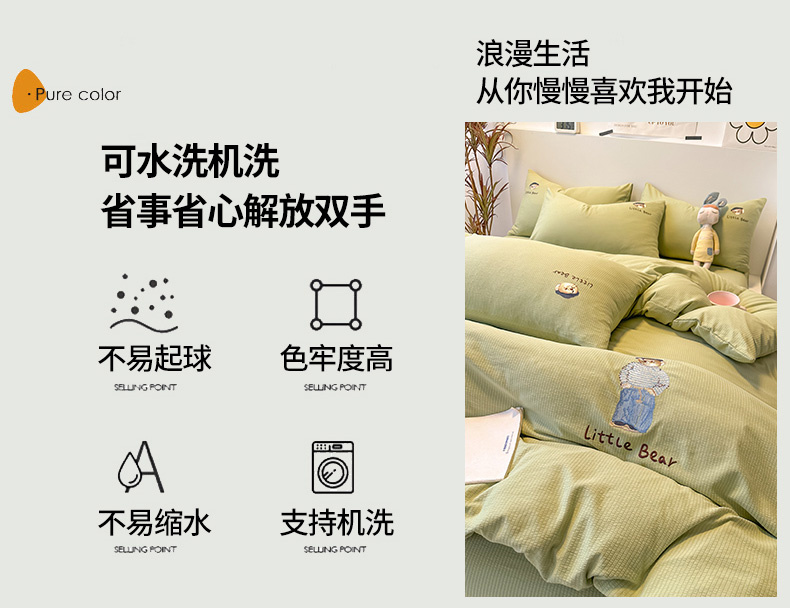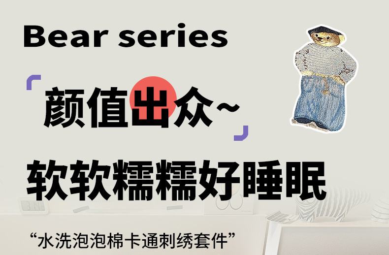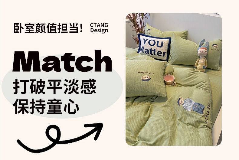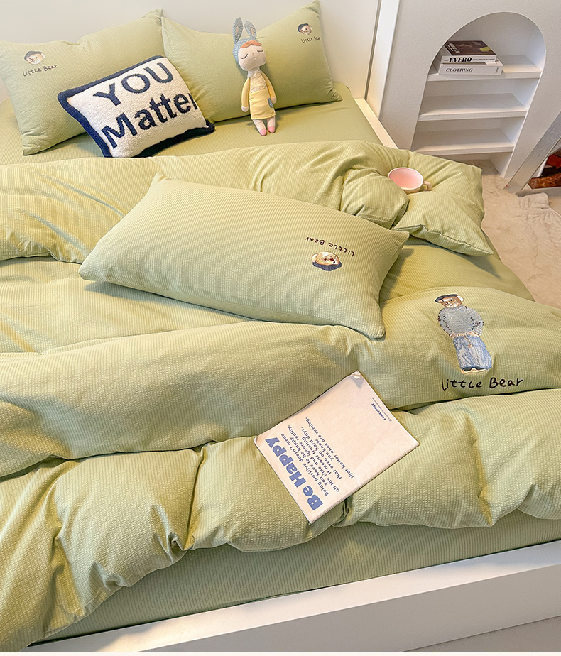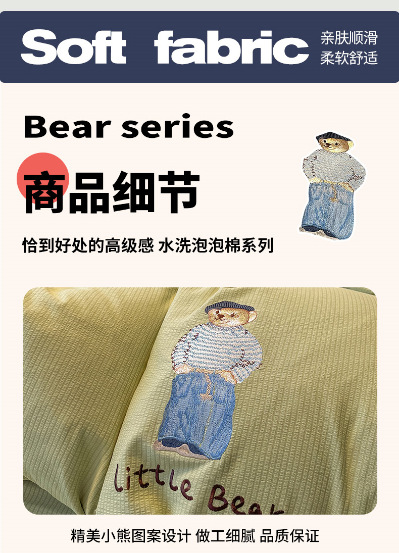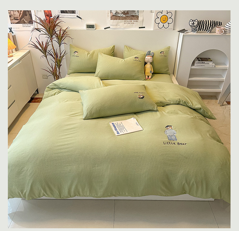 当前位置: 91家纺网 > 商品网购 > 床品套件 > 四件套 > 水洗棉四件套 > 眠帛家居 2024新款水洗棉提花刺绣四件套-熊先生 熊先生-奶油绿