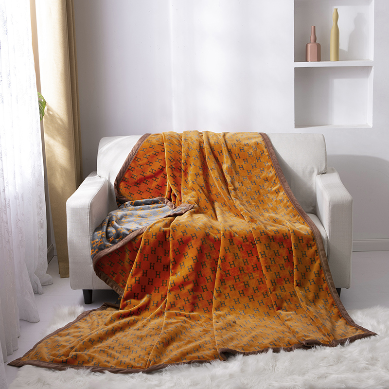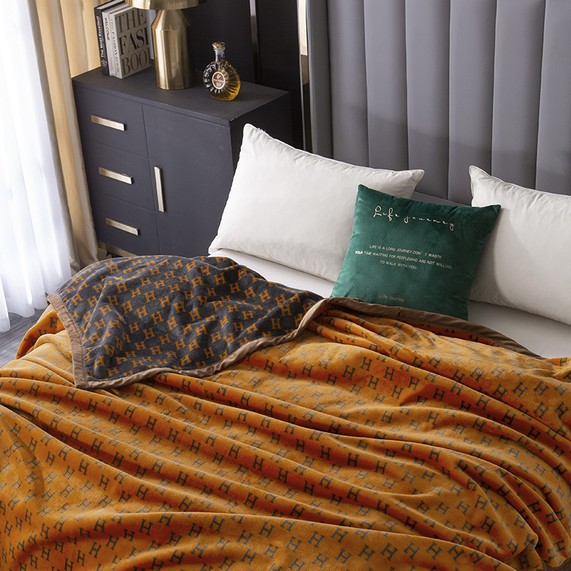 总 2023双层大版AB版云貂绒毛毯法莱绒休闲盖毯沙发空调毯,骏马,圣马罗-黄,圣马罗-兰