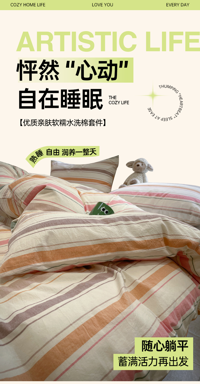 当前位置: 91家纺网 > 商品网购 > 床品套件 > 四件套 > 水洗棉四件套 > 2024新款软糯亲肤云朵棉无印风水洗棉三件套四件套 旋律