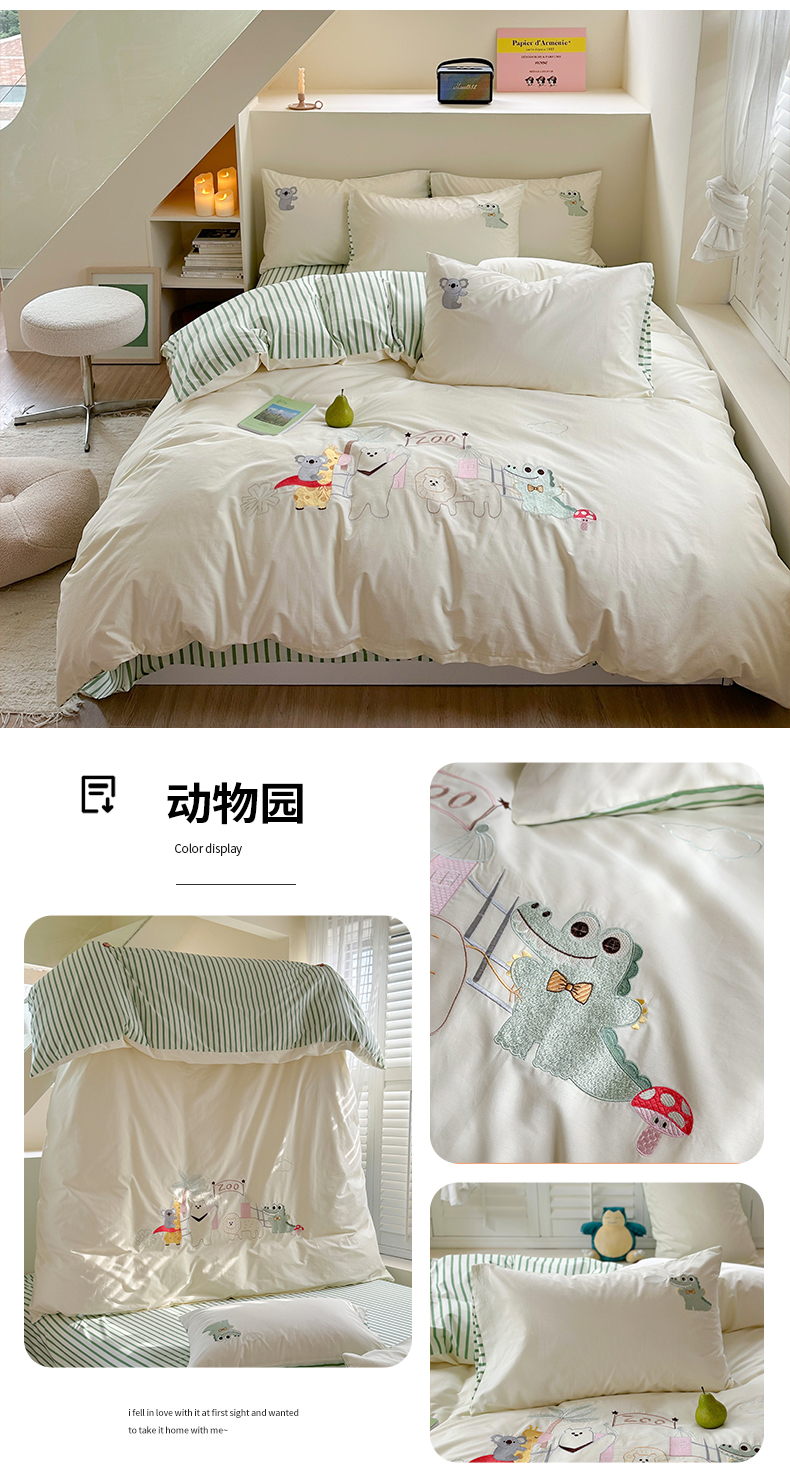 商品名称:眠屿家纺 2024新款40支全棉水洗棉平绣绣花四件套 动物园