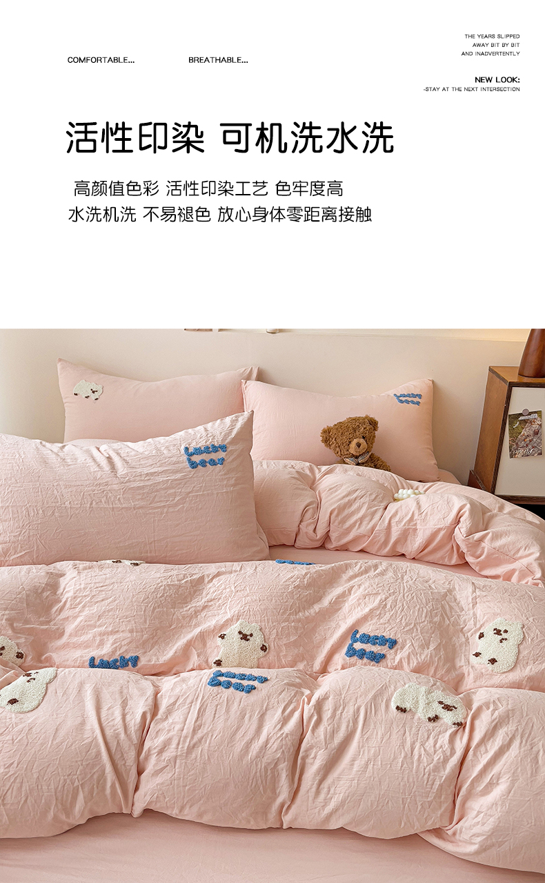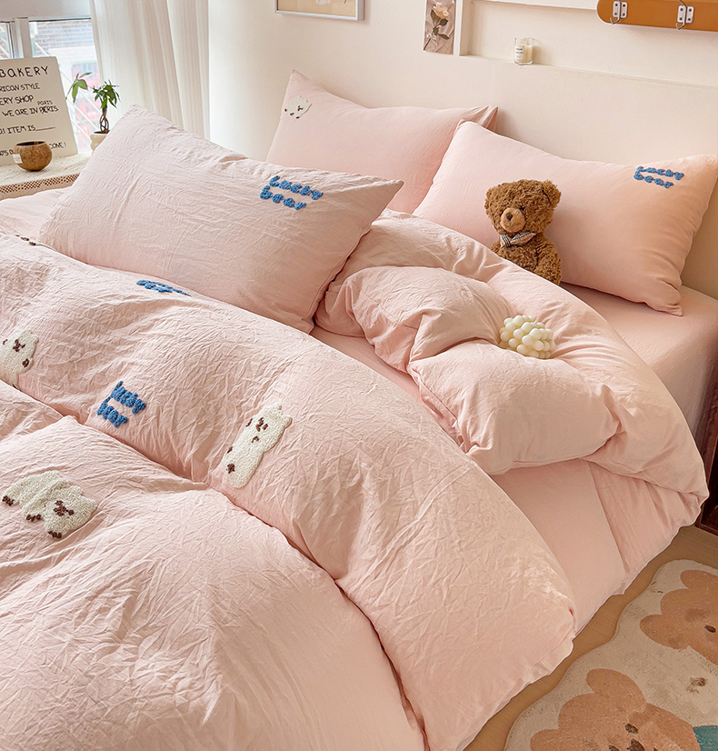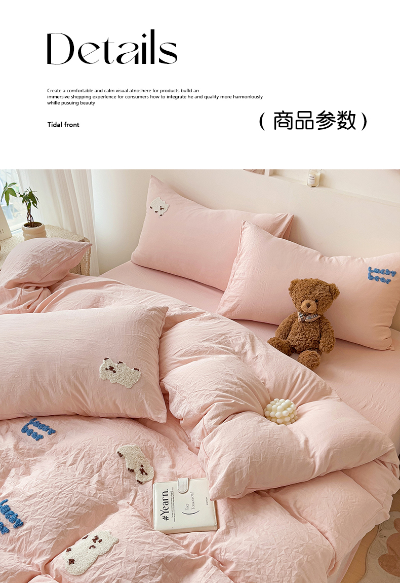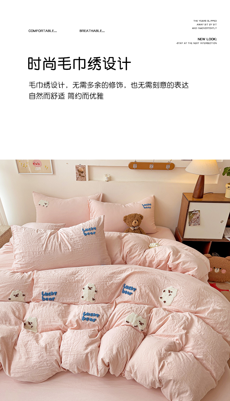 当前位置: 91家纺网 > 商品网购 > 床品套件 > 四件套 > 毛巾绣四件套 > 韩巢家纺 2024新款四季通用超柔水洗棉毛巾绣四件套-小白熊系列(提供卖家秀) 小白熊 浅粉