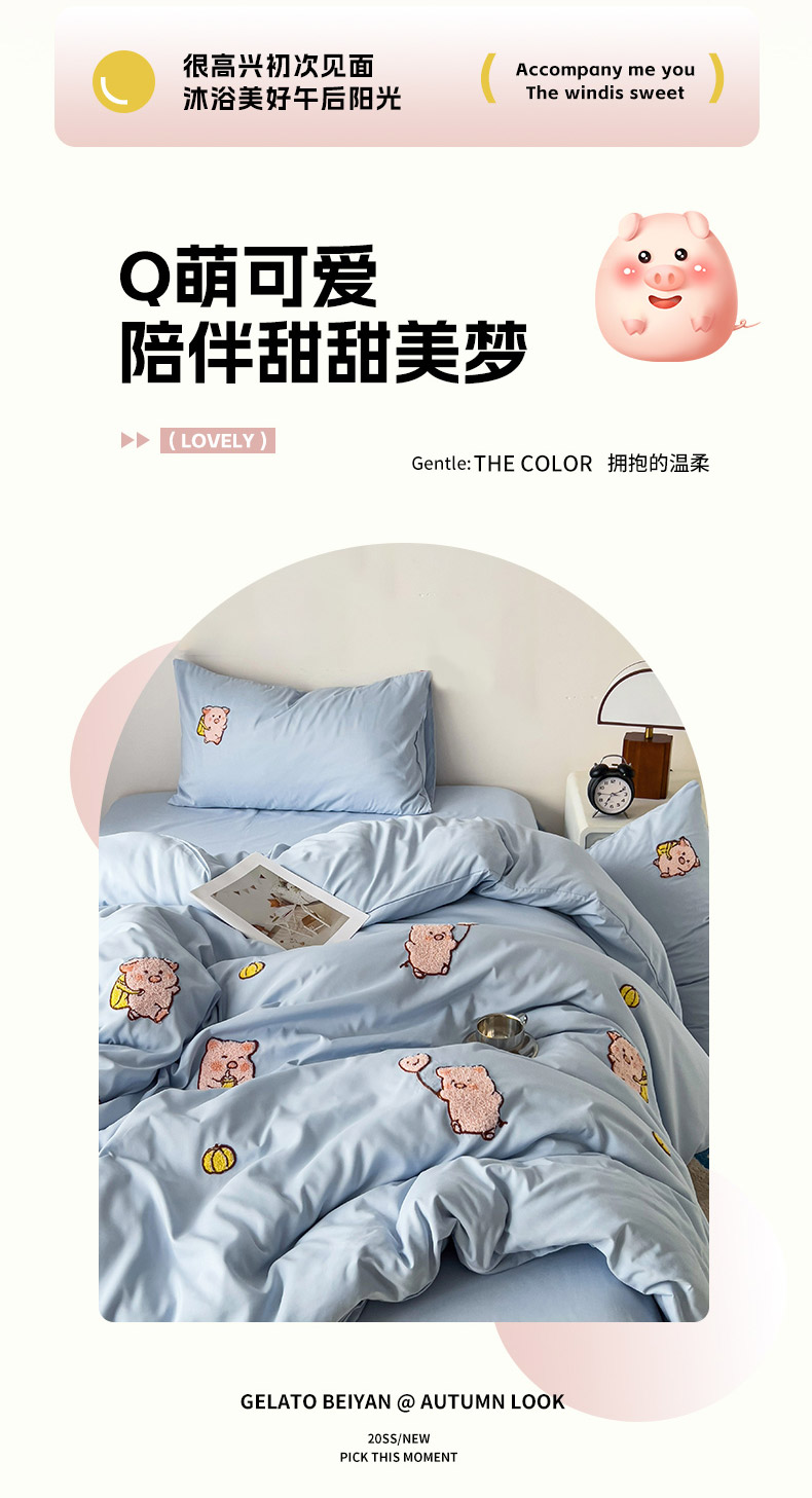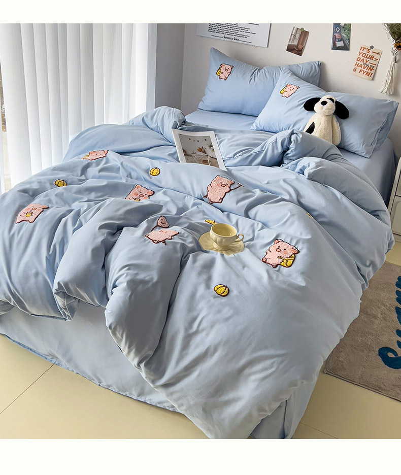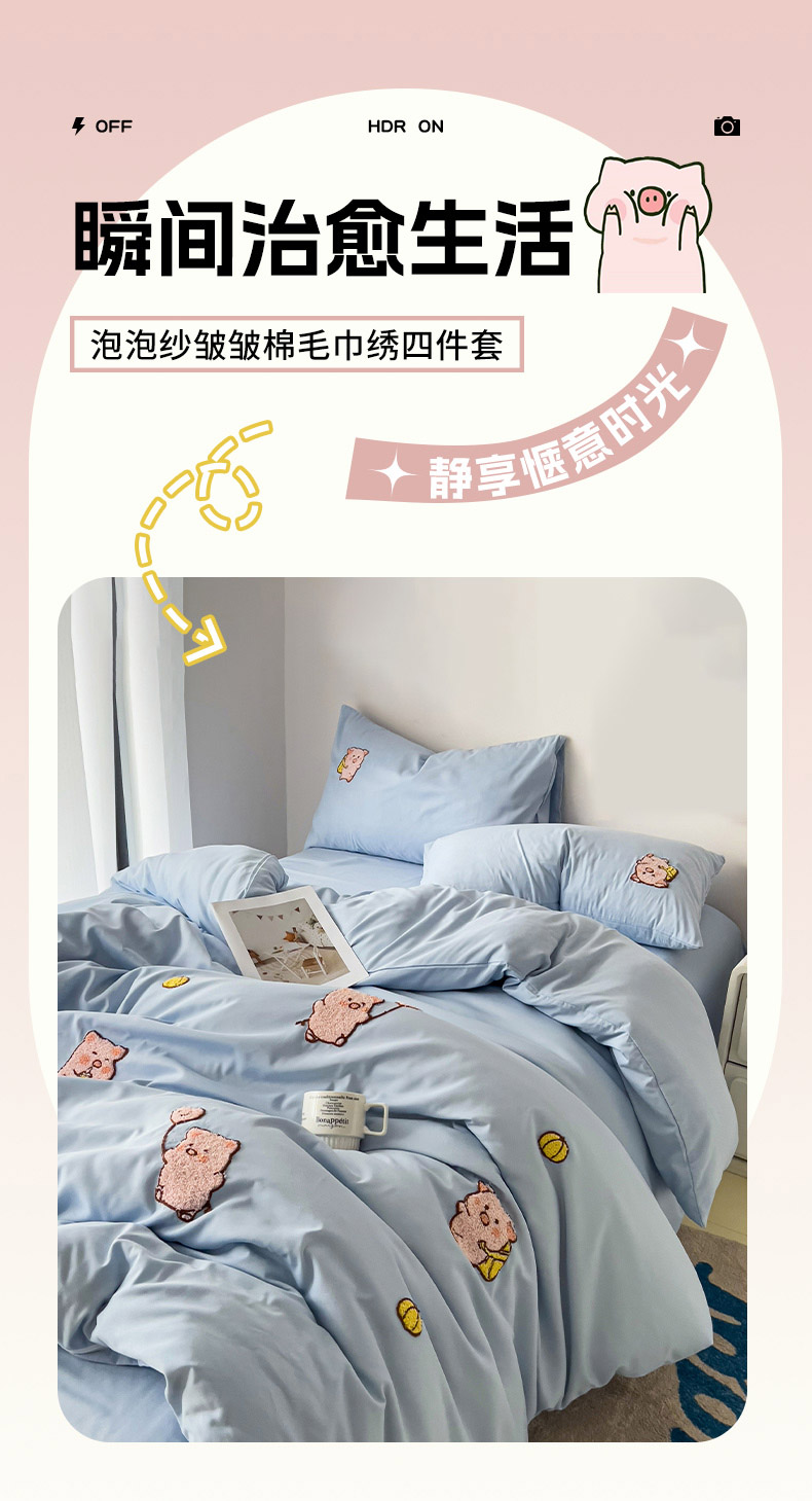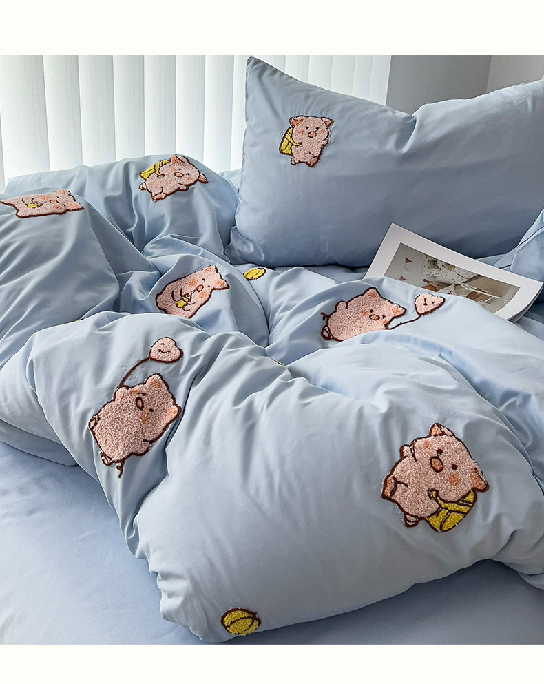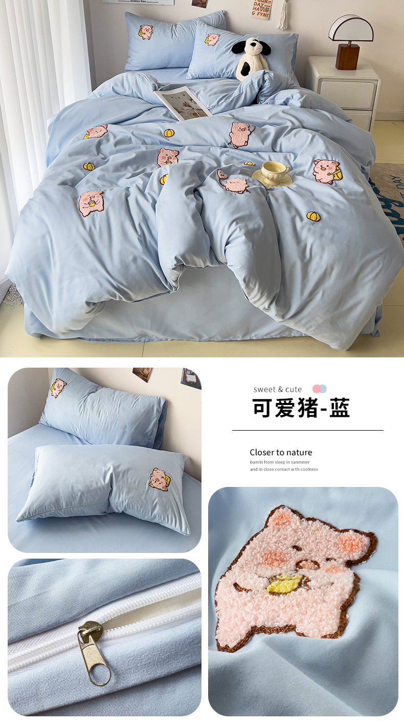 当前位置: 91家纺网 > 商品网购 > 床品套件 > 四件套 > 水洗棉四件套 > 梦之岛 2024新款学生季ins水洗云朵棉可爱毛巾绣四件套 可爱猪-蓝