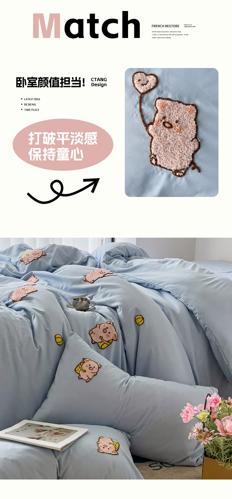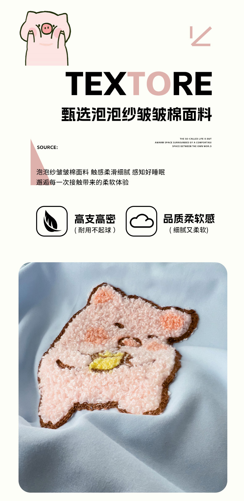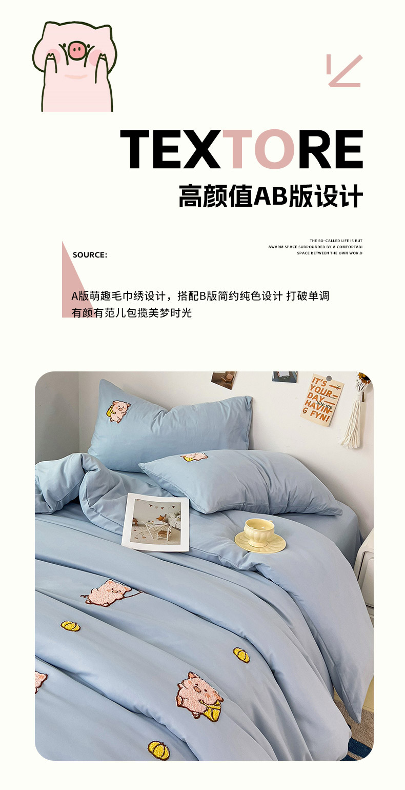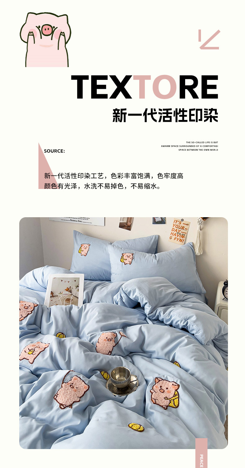 当前位置: 91家纺网 > 商品网购 > 床品套件 > 四件套 > 水洗棉四件套 > 梦之岛 2024新款学生季ins水洗云朵棉可爱毛巾绣四件套 可爱猪-蓝