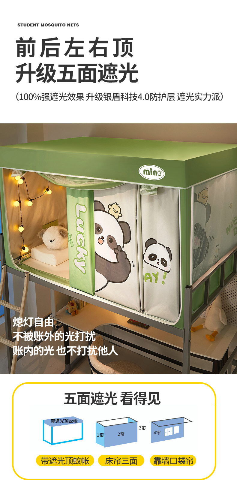2025新款A类大版卡通超强遮光防蚊学生坐床蚊帐 摆拍熊猫