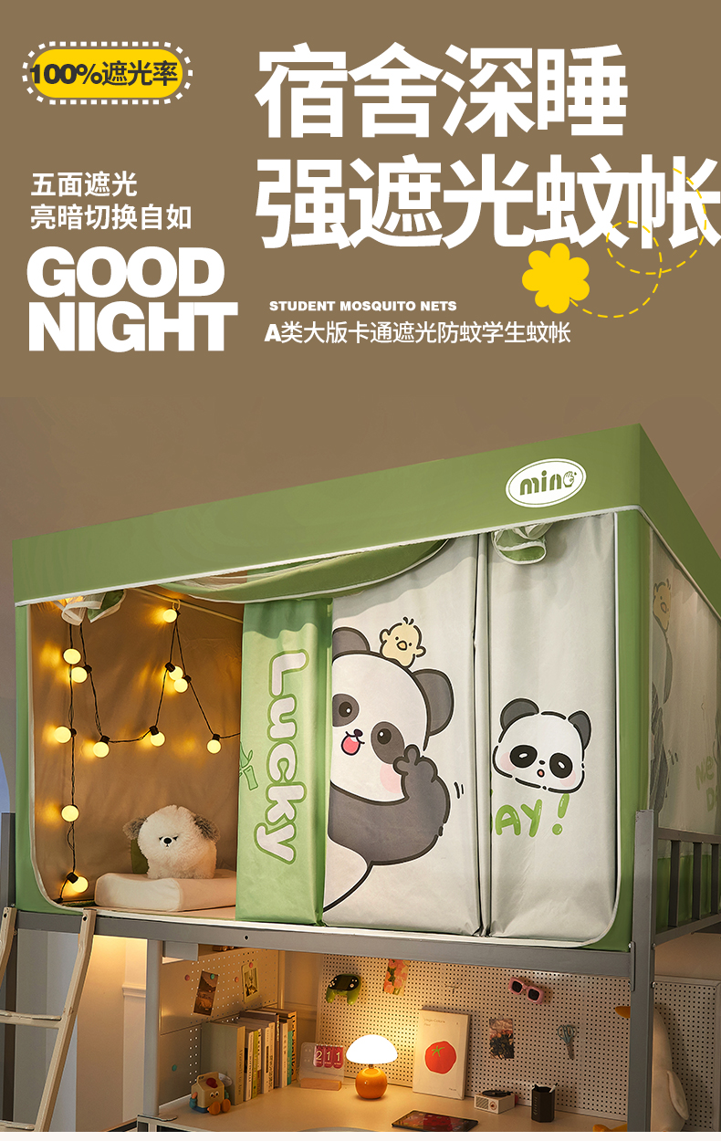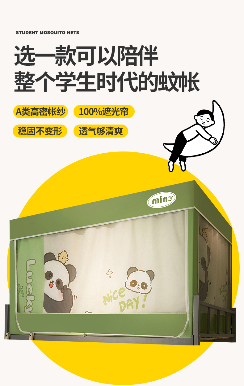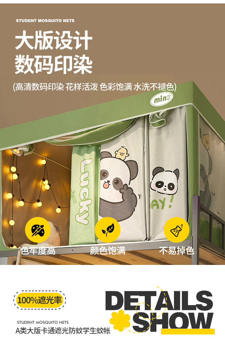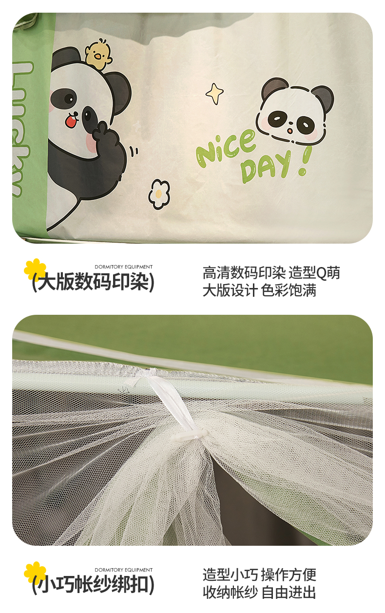 商品名称:2025新款A类大版卡通超强遮光防蚊学生坐床蚊帐 摆拍熊猫