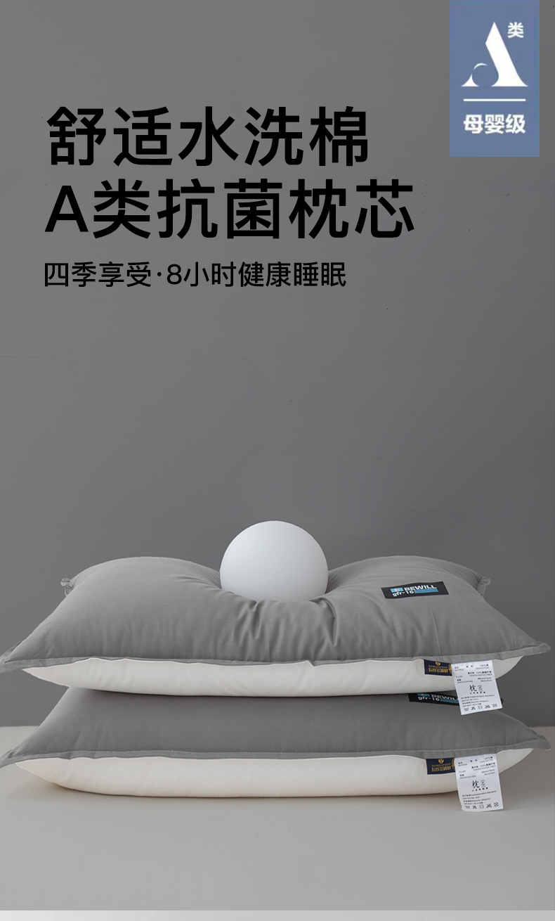 商品名称:(总)贵夫人 2024新款双面水洗棉护颈枕枕头枕芯-学生成人款