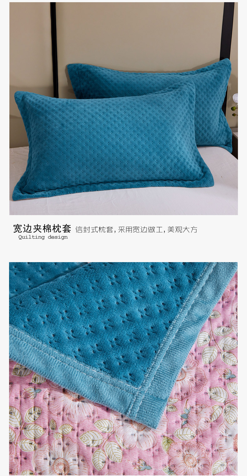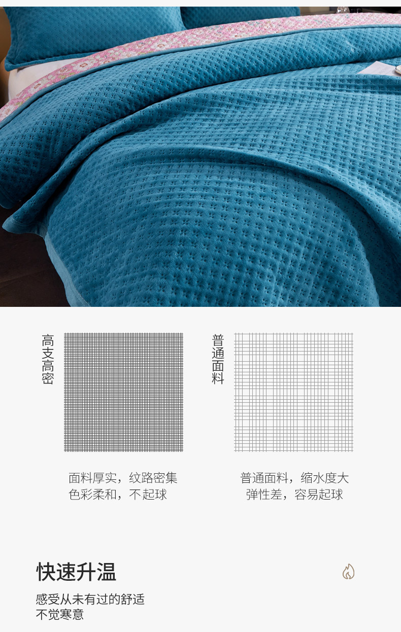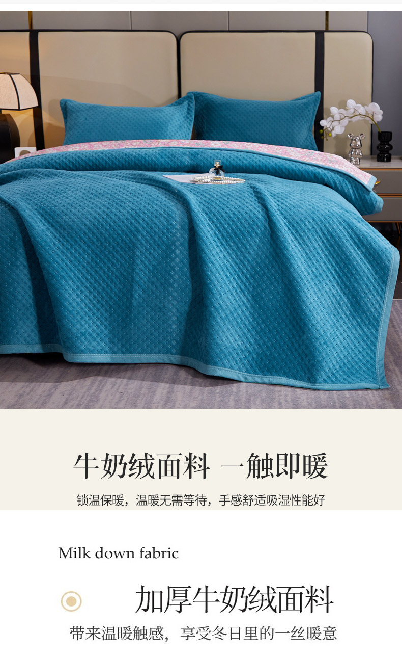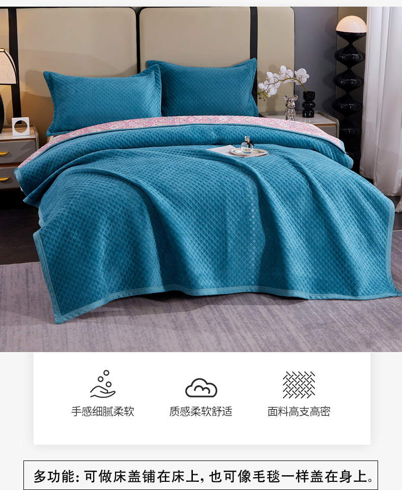 商品名称:(总)2025新款AB面高克重纯色华夫格床盖高密度牛奶绒床盖三件套 冬季加厚绗缝夹棉床单榻榻米垫子毛毯盖毯