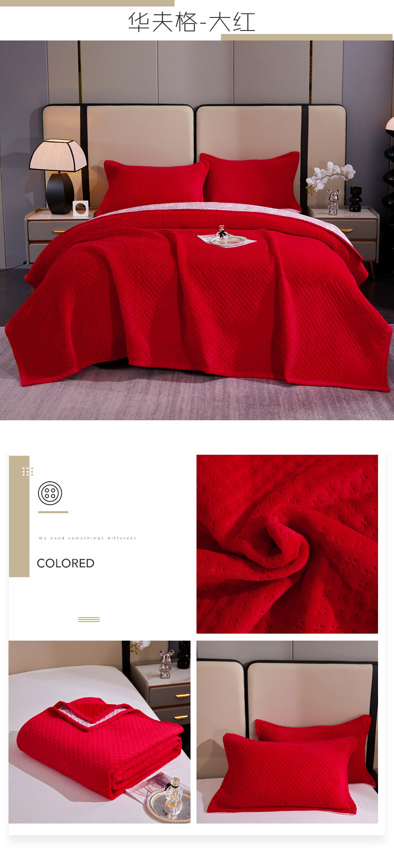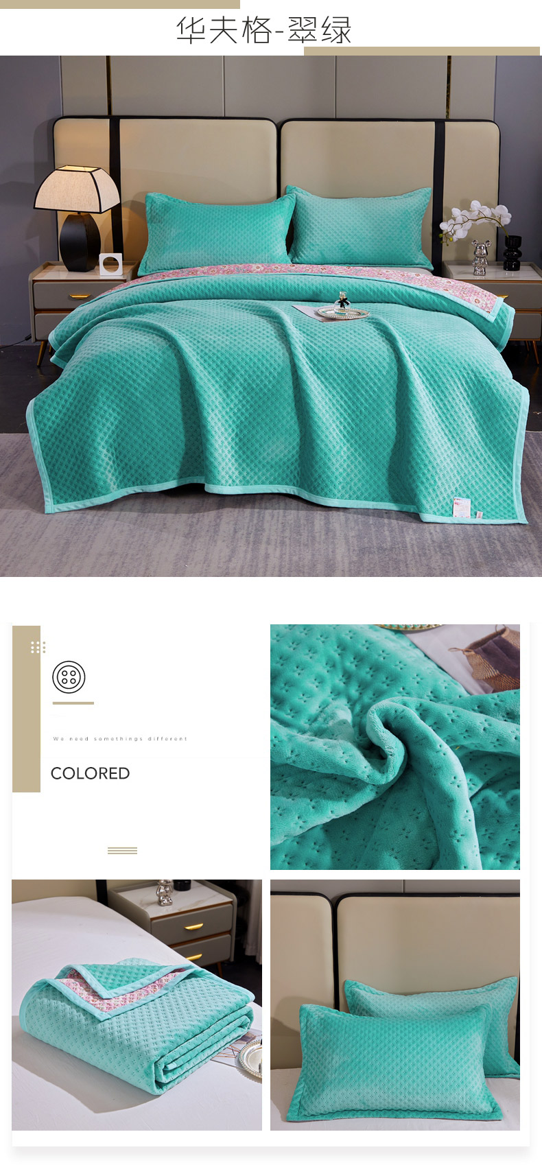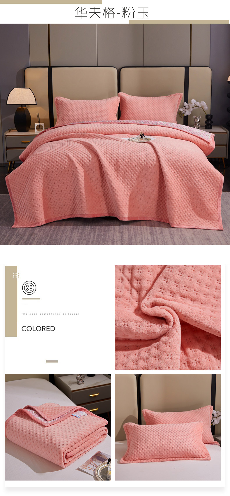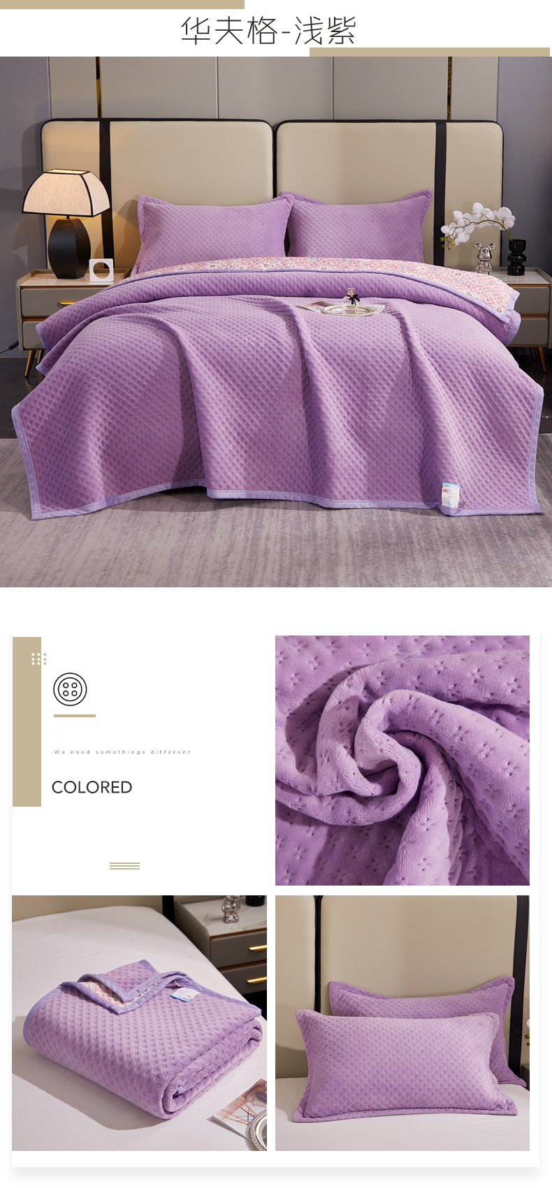 商品名称:(总)2025新款AB面高克重纯色华夫格床盖高密度牛奶绒床盖三件套 冬季加厚绗缝夹棉床单榻榻米垫子毛毯盖毯