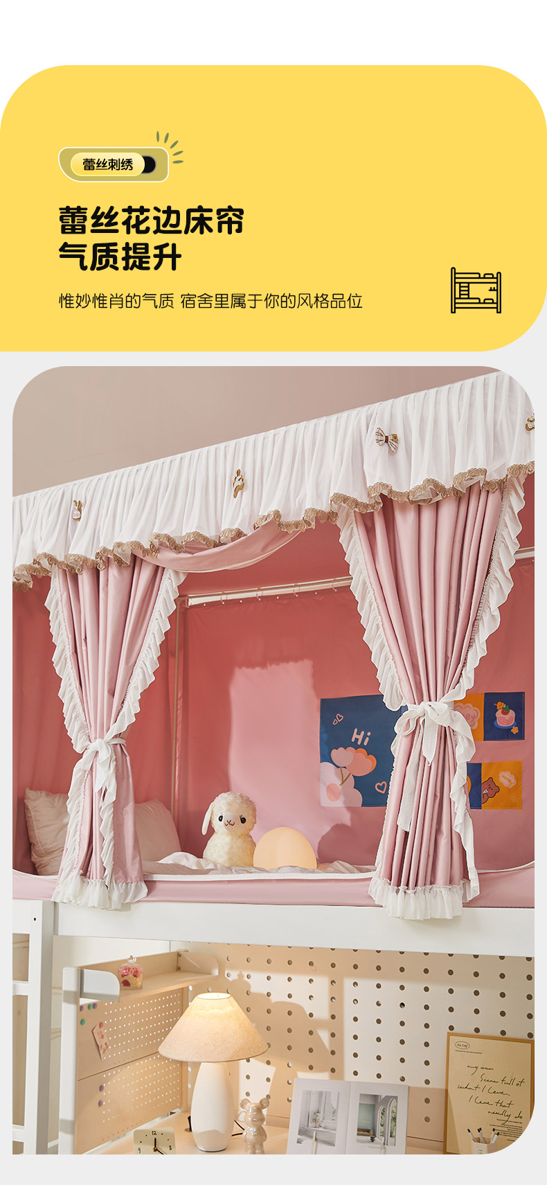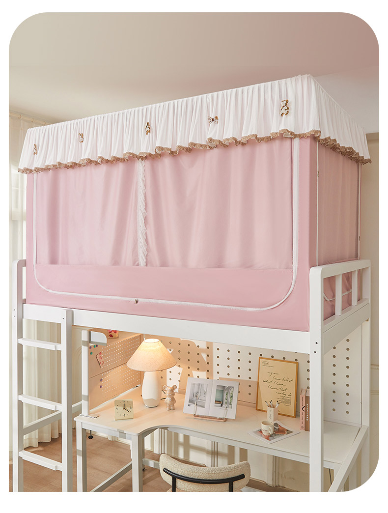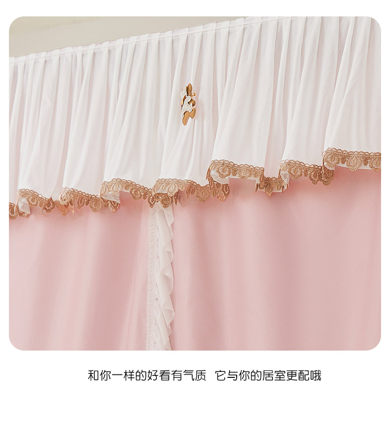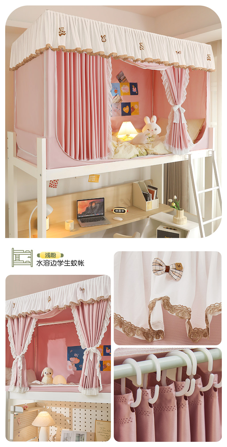 • 91家纺网 家纺一手货源 找家纺 富莱星蚊帐 2024新款新科技植绒翻毛皮水溶花边学生蚊帐强遮光上下铺 水溶边-浅粉