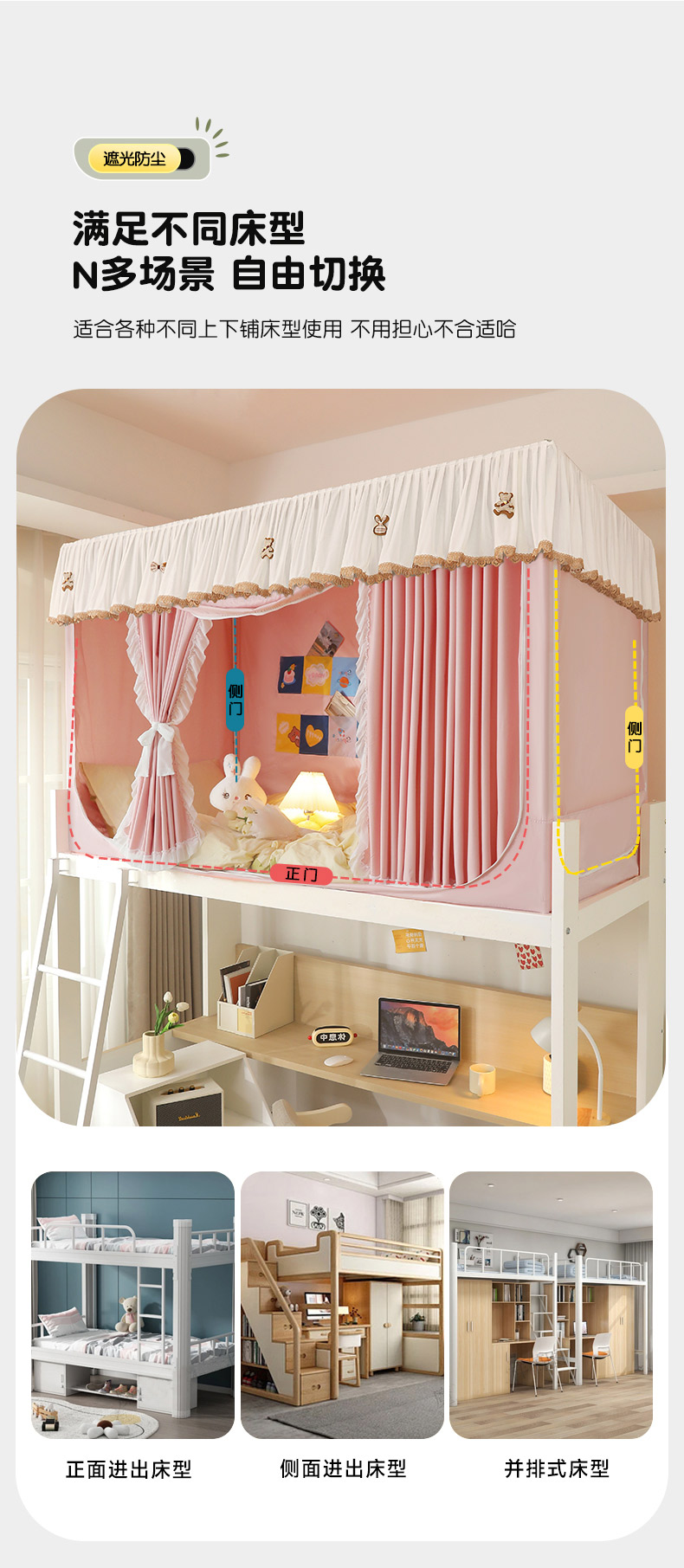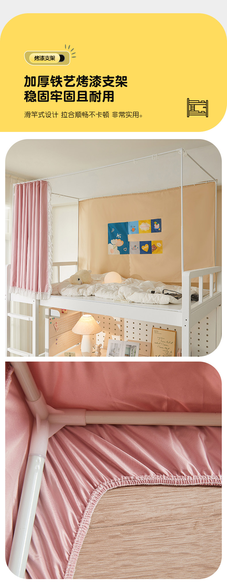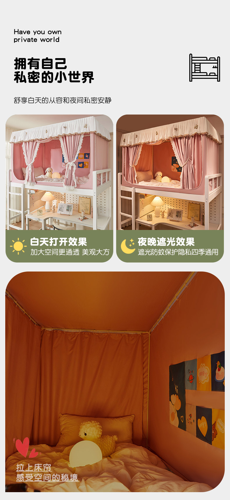 • 91家纺网 家纺一手货源 找家纺 富莱星蚊帐 2024新款新科技植绒翻毛皮水溶花边学生蚊帐强遮光上下铺 水溶边-浅粉