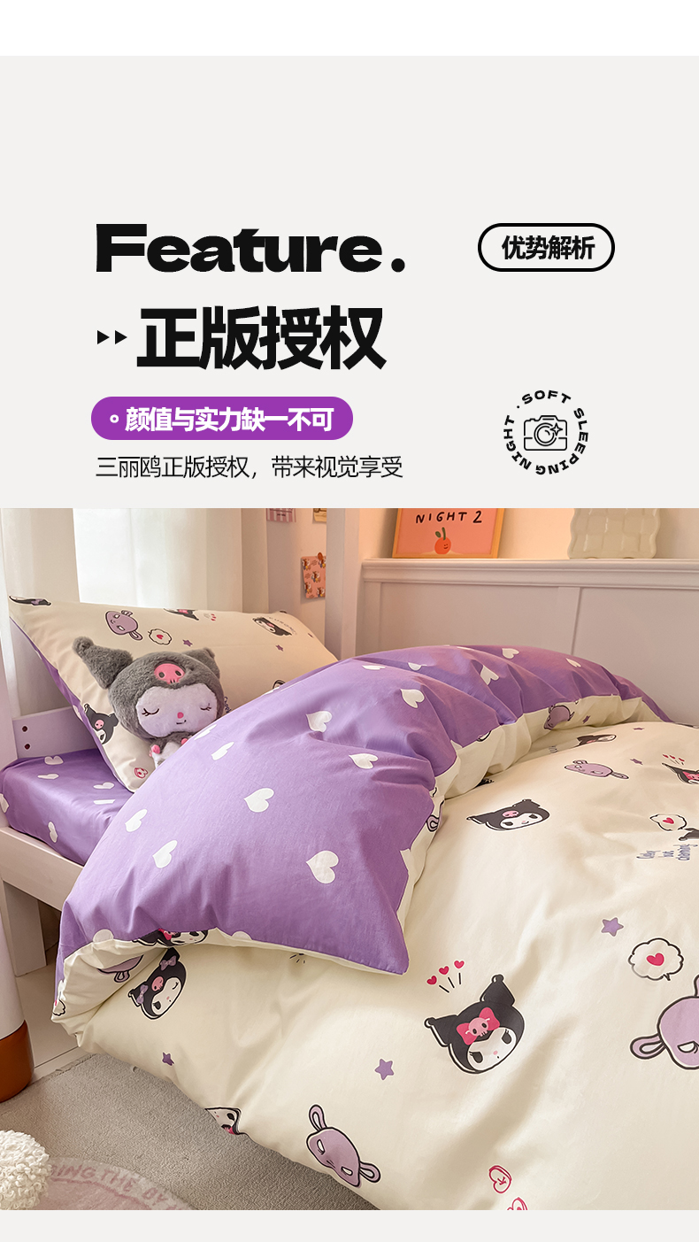 当前位置: 91家纺网 > 商品网购 > 床品套件 > 四件套 > 全棉普通四件套 > 2024新款三丽鸥授权全棉少女印花系列学生三件套四件套 棉三丽鸥-迷你库洛米