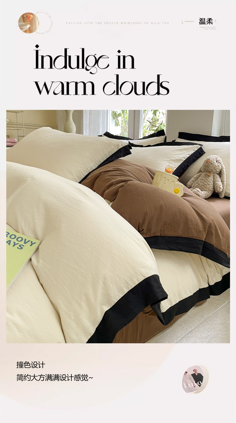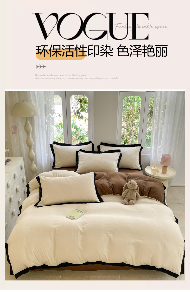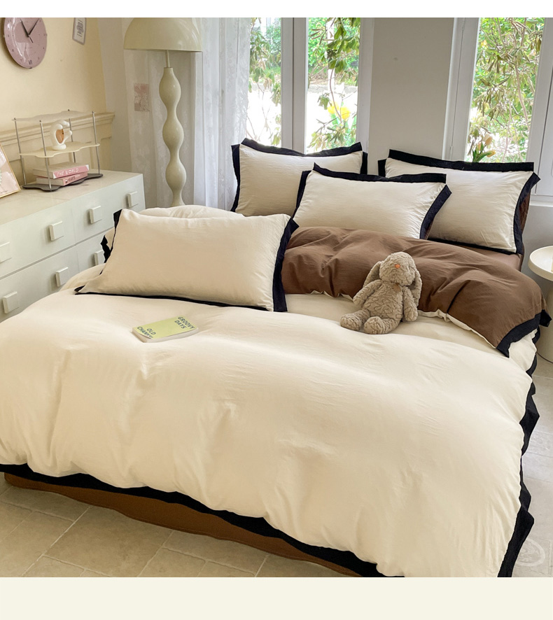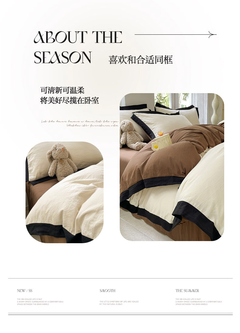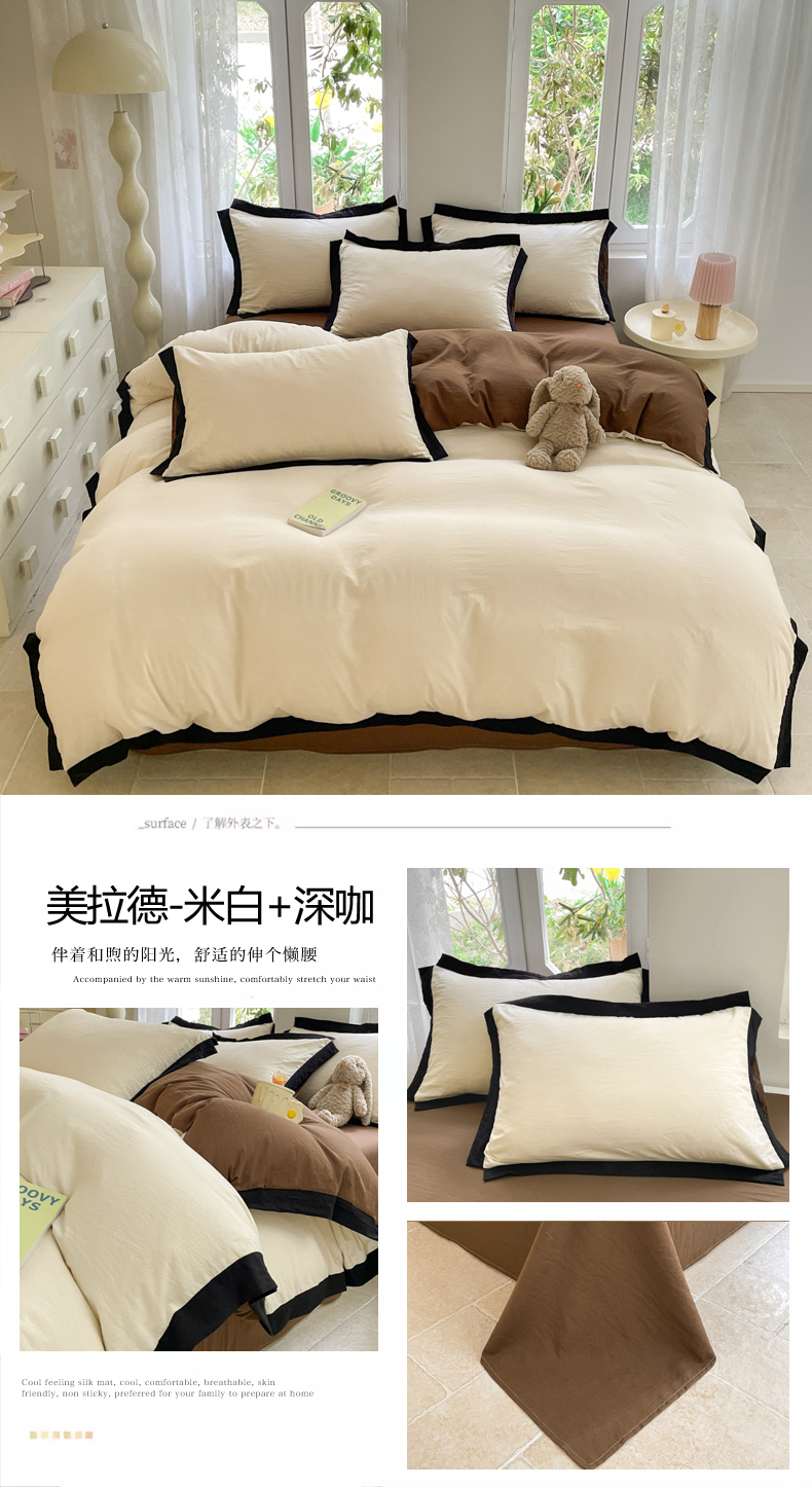 商品名称:慕澄家纺 2024新款美拉德风双拼四件套 美拉德-米白+深咖