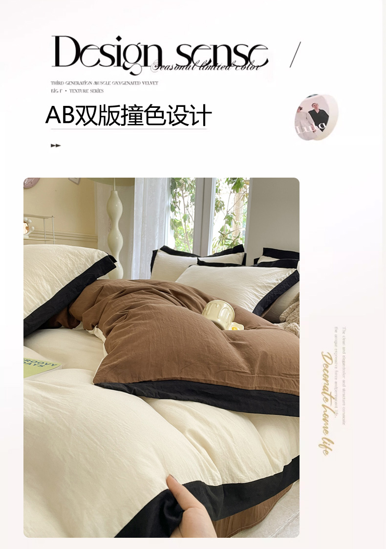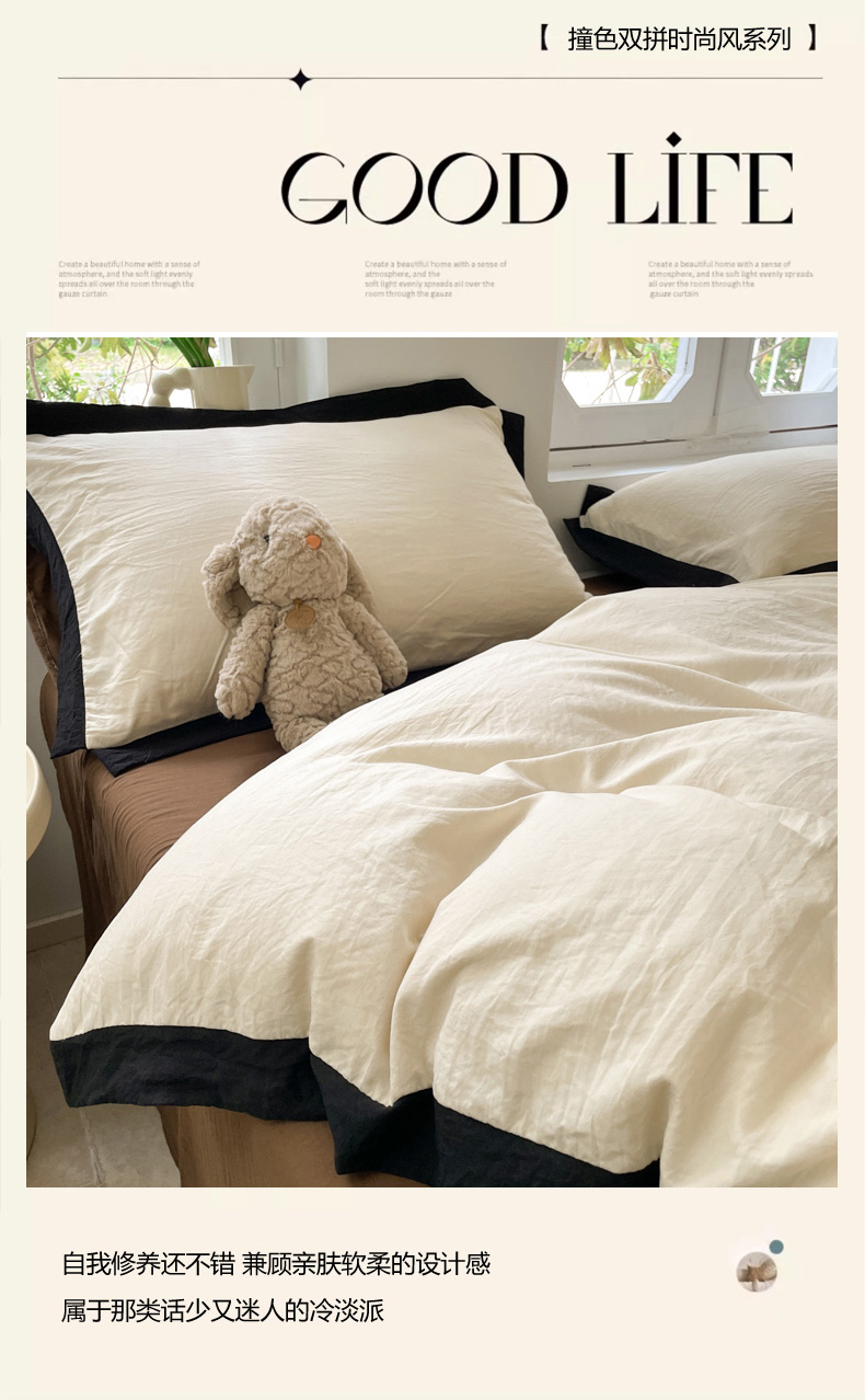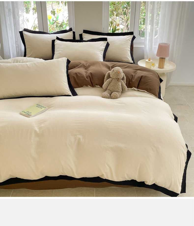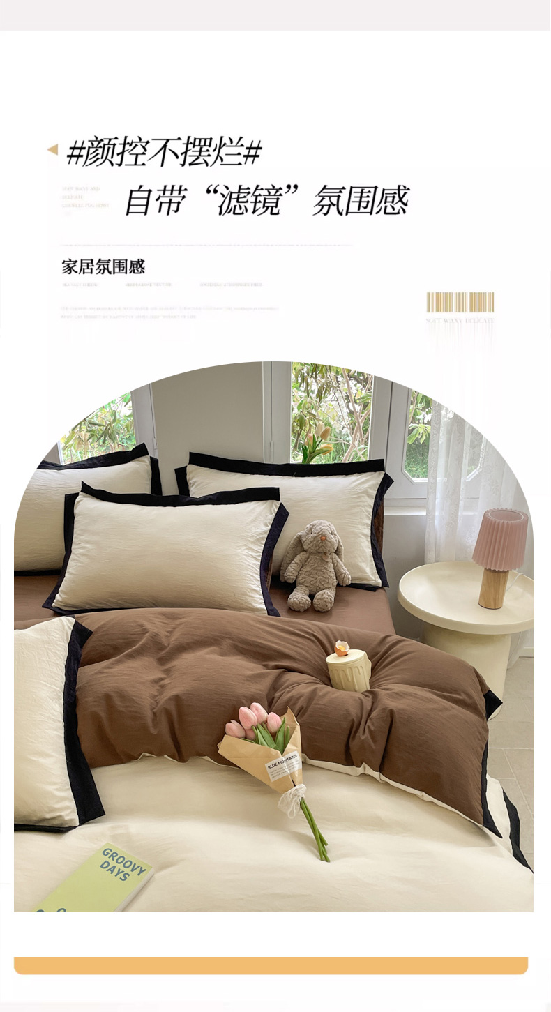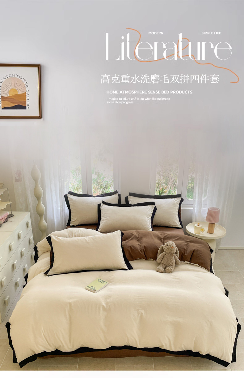 商品名称:慕澄家纺 2024新款美拉德风双拼四件套 美拉德-米白+深咖