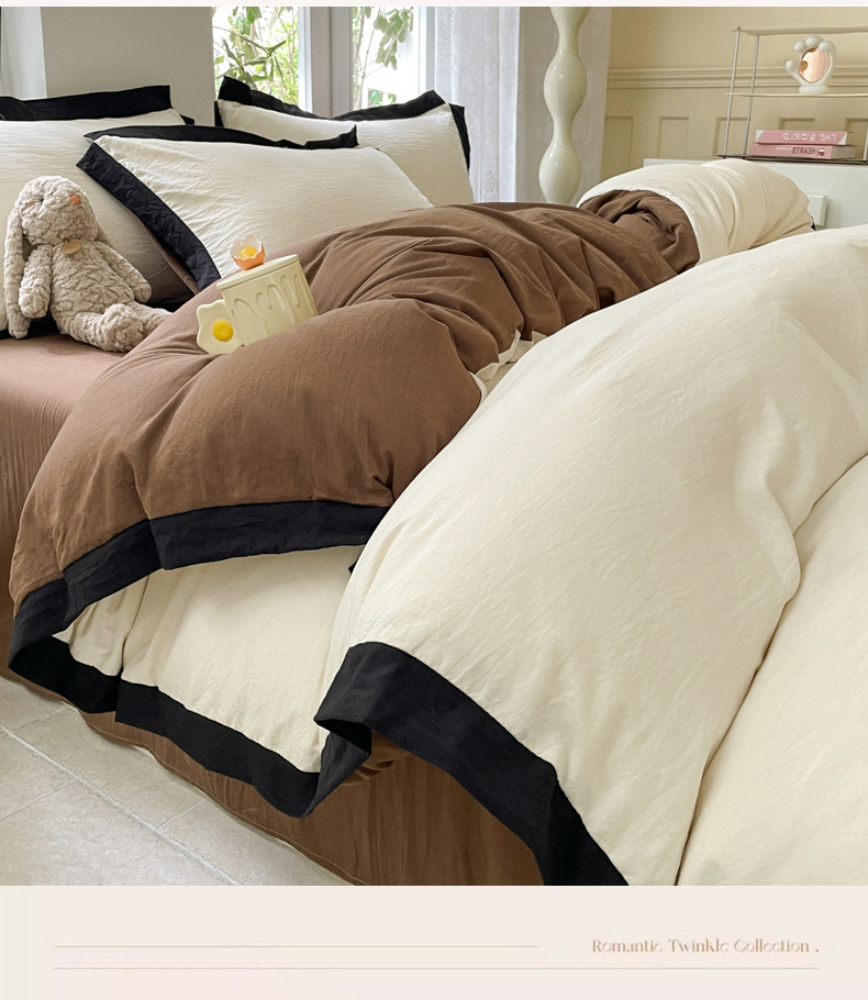 慕澄家纺 2024新款美拉德风双拼四件套 美拉德-米白+深咖