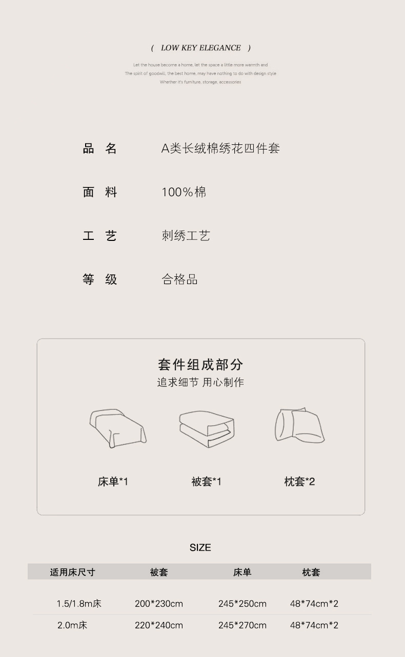 (总)云栖家居 2025秋冬新款50支纯色双拼加厚全棉磨毛被套刺绣100S纯棉四件套-小蝴蝶系列,粉灰,粉紫,蓝灰,米玉,月光黄
