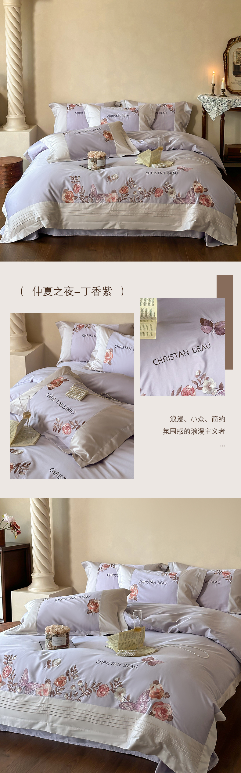 云栖家居 2024全棉刺绣四件套-仲夏之夜 仲夏之夜-丁香紫