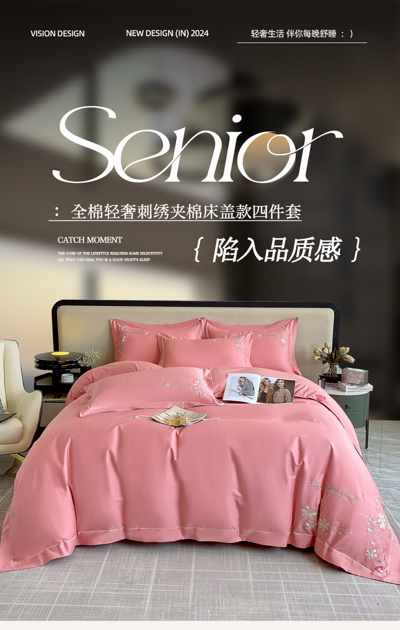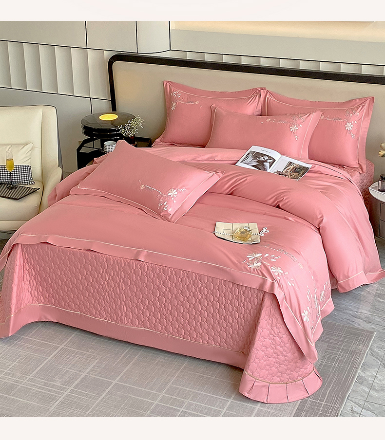 (总)小时代家纺 2025全棉活性喷气简约轻奢刺绣夹棉床盖款四件套-雅韵,雅韵-橙色,雅韵-灰兰,雅韵-青绿,雅韵-香槟,雅韵-胭粉,雅韵-紫色