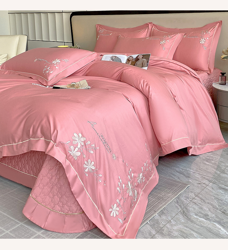 (总)小时代家纺 2024新款13376全活性喷气简约轻奢刺绣夹棉床盖四件套-繁花,繁花-橙色,繁花-豆沙,繁花-灰色,繁花-蓝色,繁花-香槟,繁花-紫色
