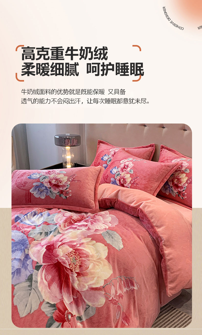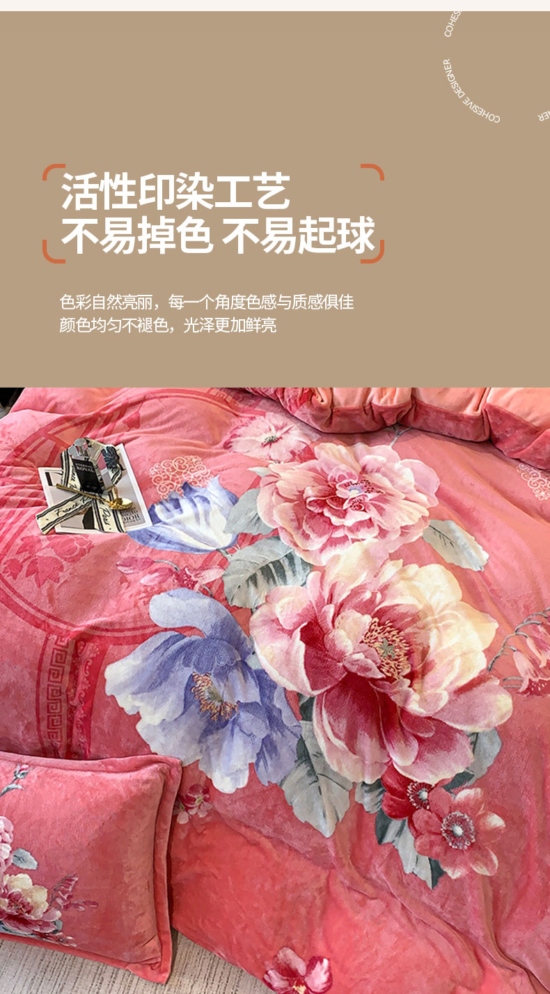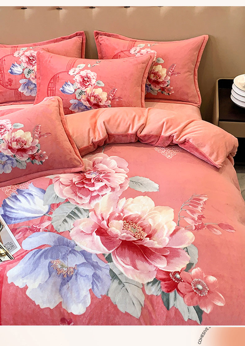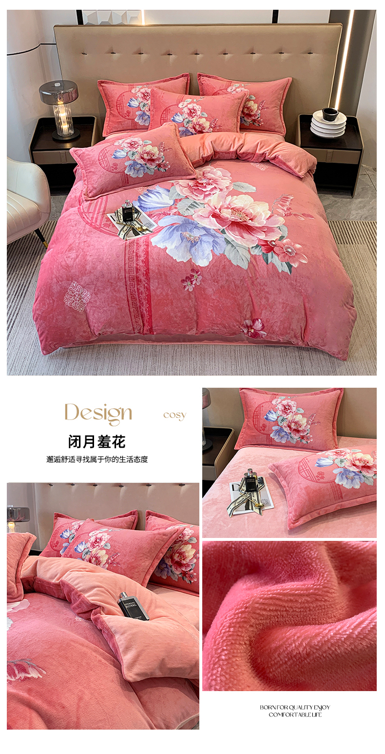 商品名称:喜梦缘 2025新款大版花卉牛奶绒四件套 闭月羞花