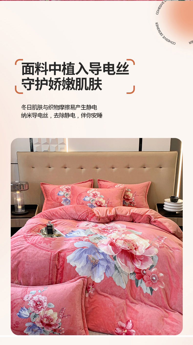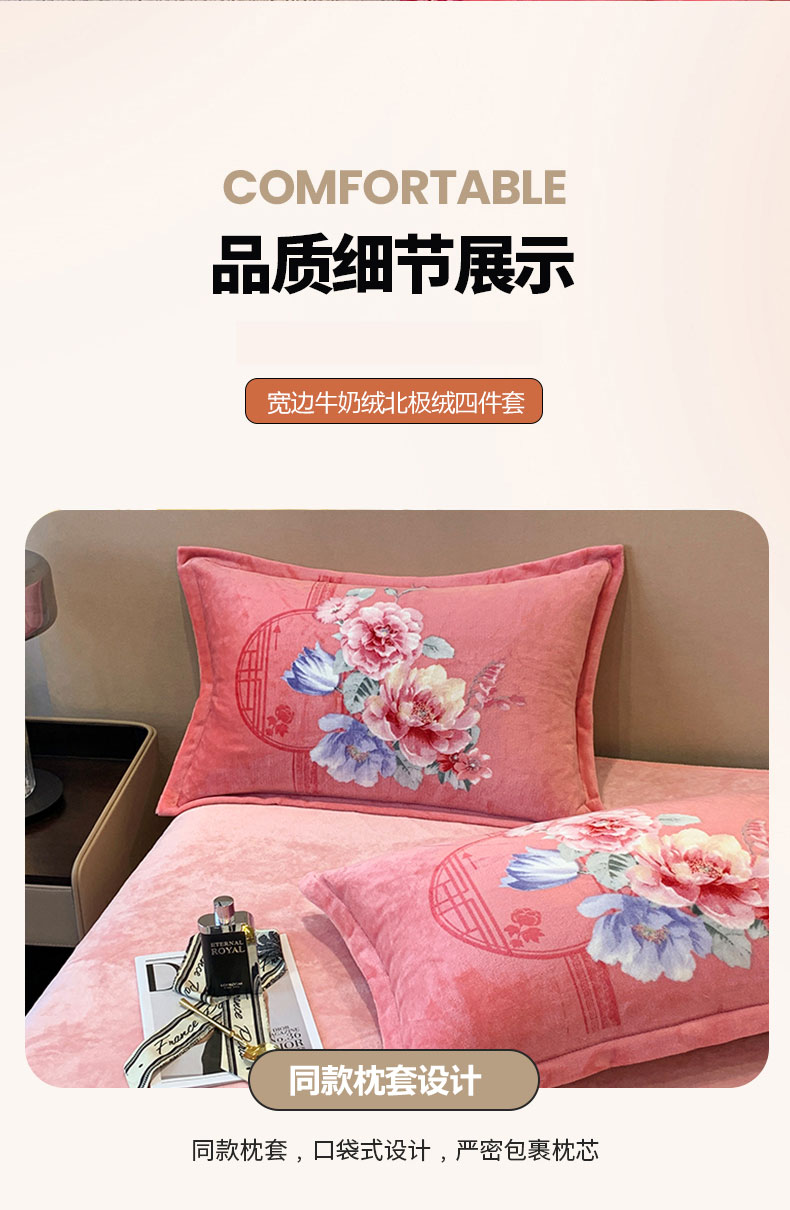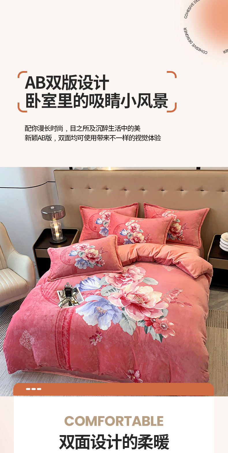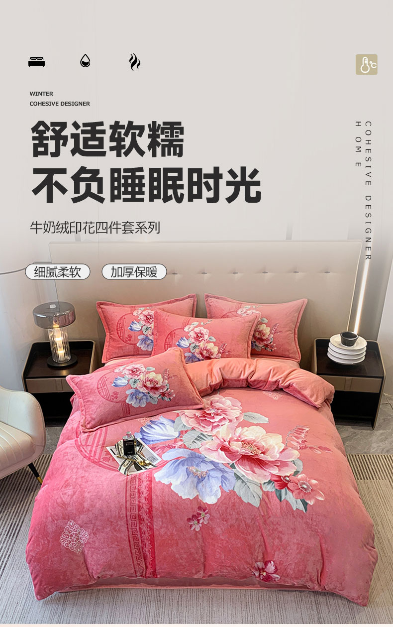 商品名称:喜梦缘 2025新款大版花卉牛奶绒四件套 闭月羞花