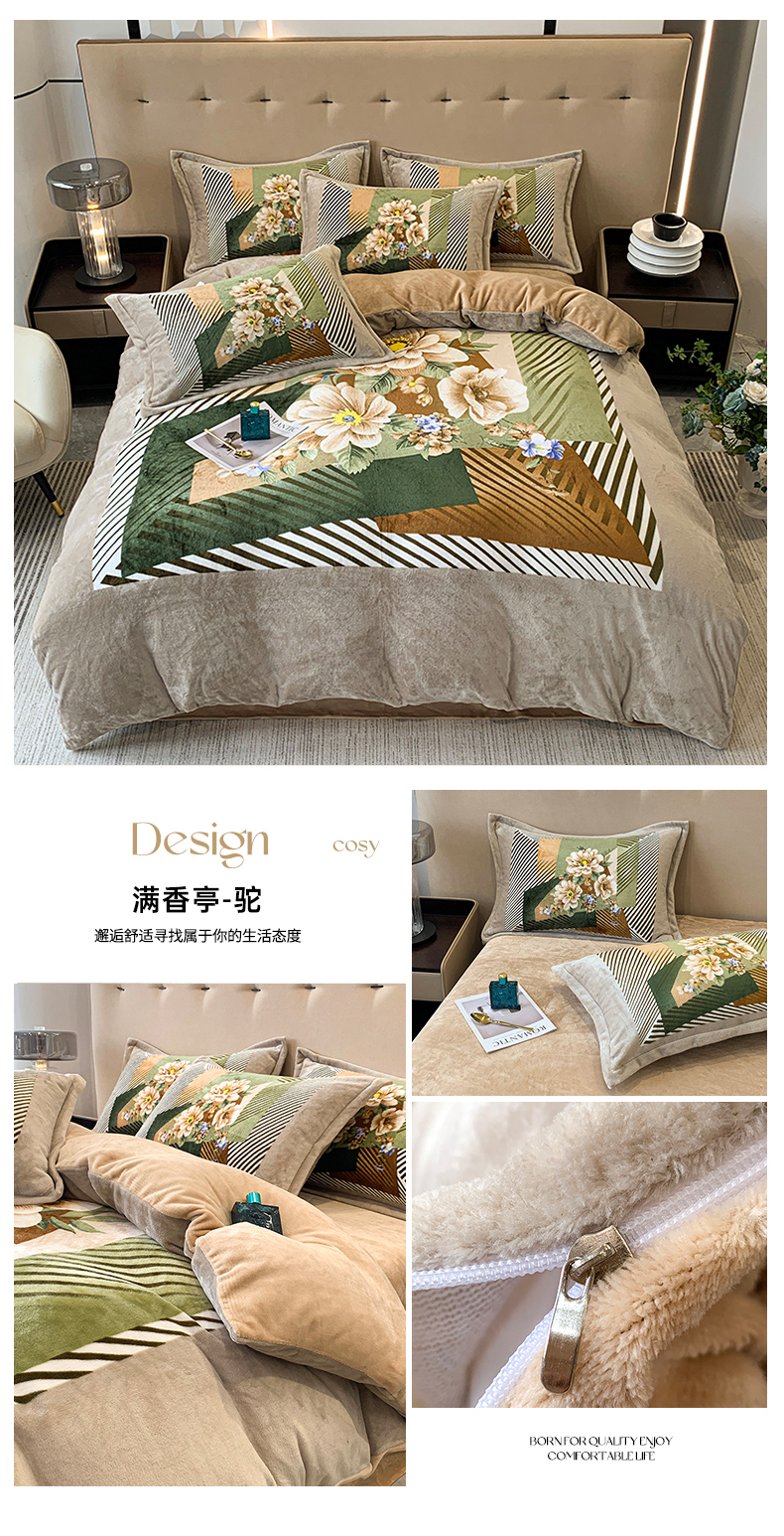 商品名称:喜梦缘 2025新款大版花卉牛奶绒四件套 满香亭-驼