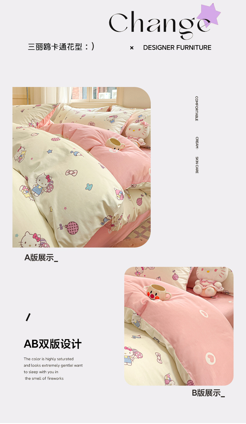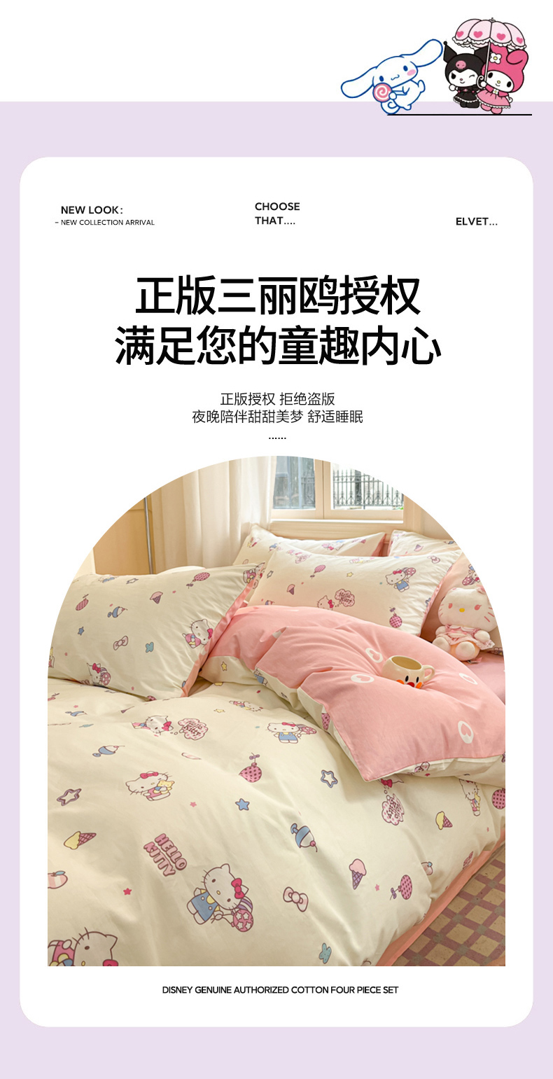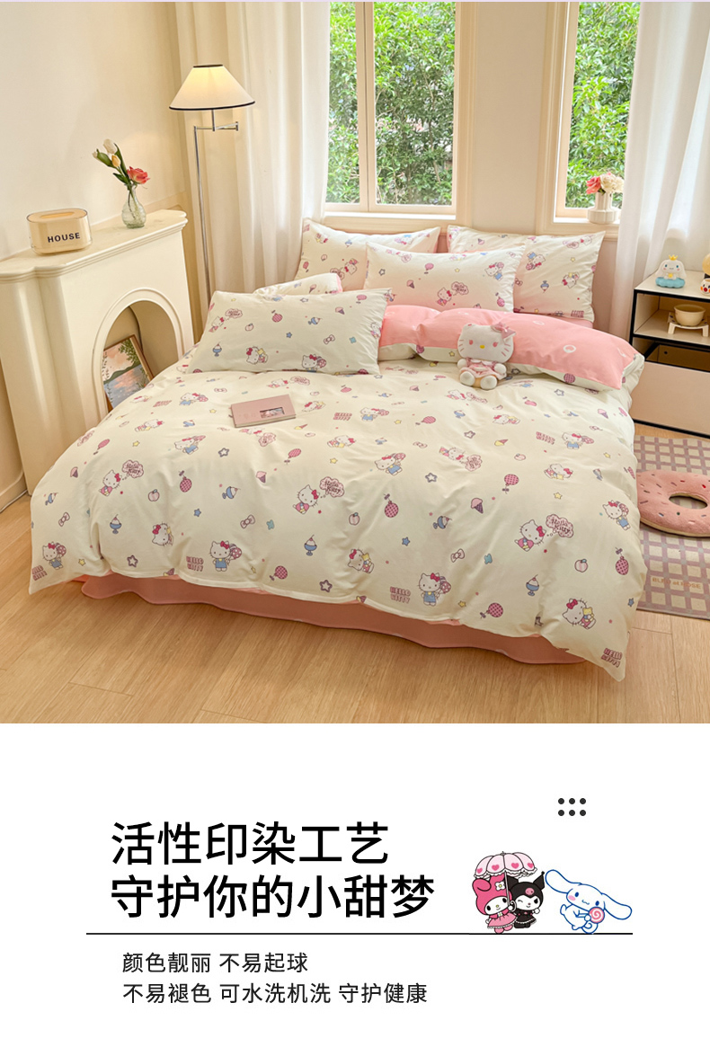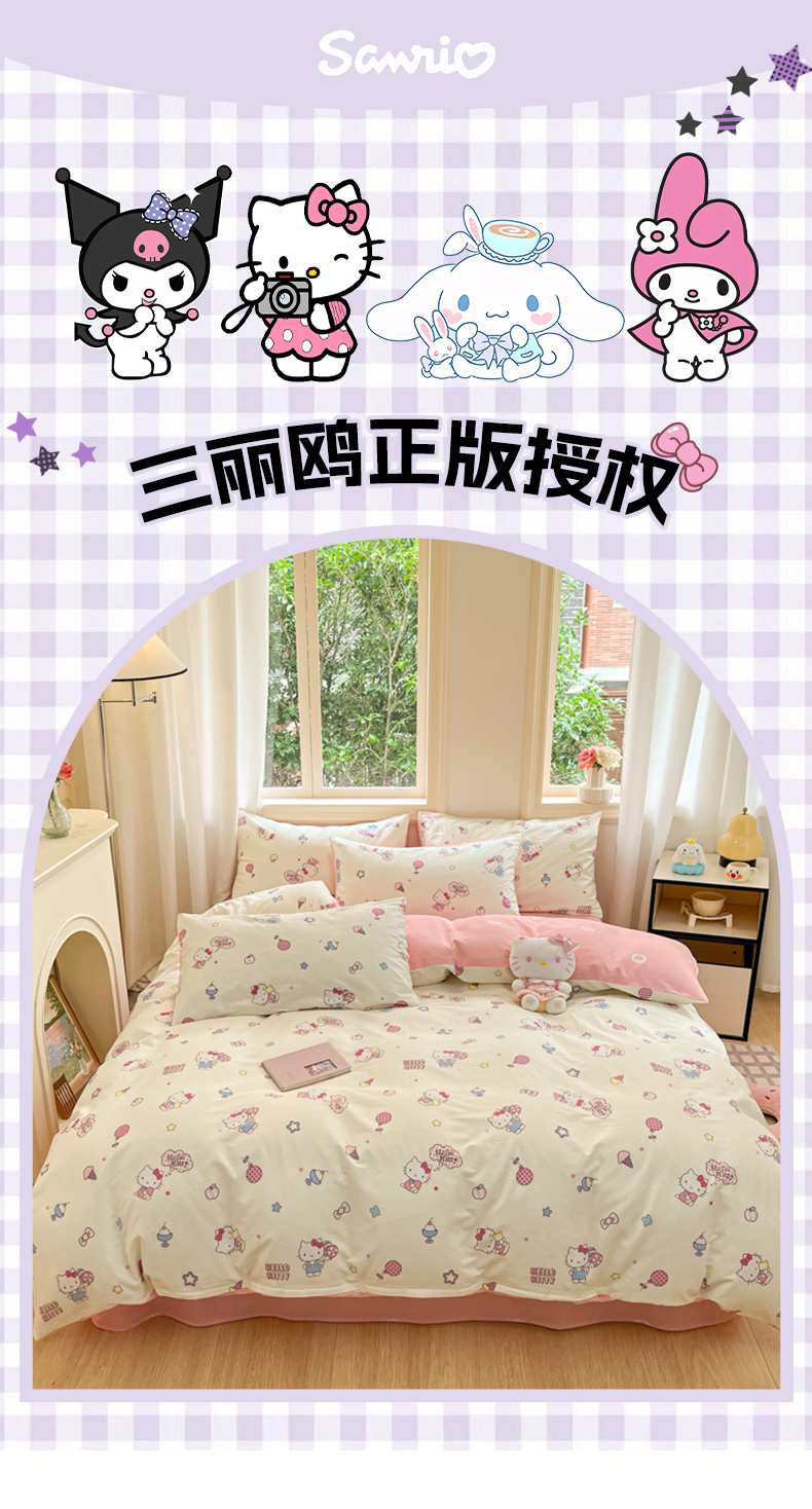 当前位置: 91家纺网 > 商品网购 > 床品套件 > 四件套 > 全棉普通四件套 > 博雅 2024新款三丽鸥全棉印花卡通四件套 美美KT