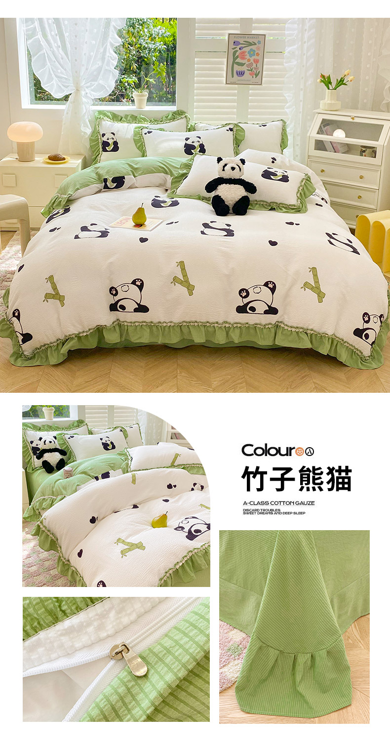 商品名称:同田家纺 2024新款泡泡棉印花蕾丝工艺四件套 竹子熊猫