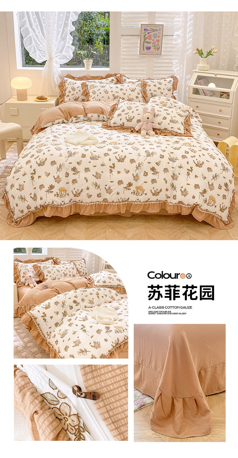 同田家纺 2024新款泡泡棉印花蕾丝工艺四件套 苏菲庄园