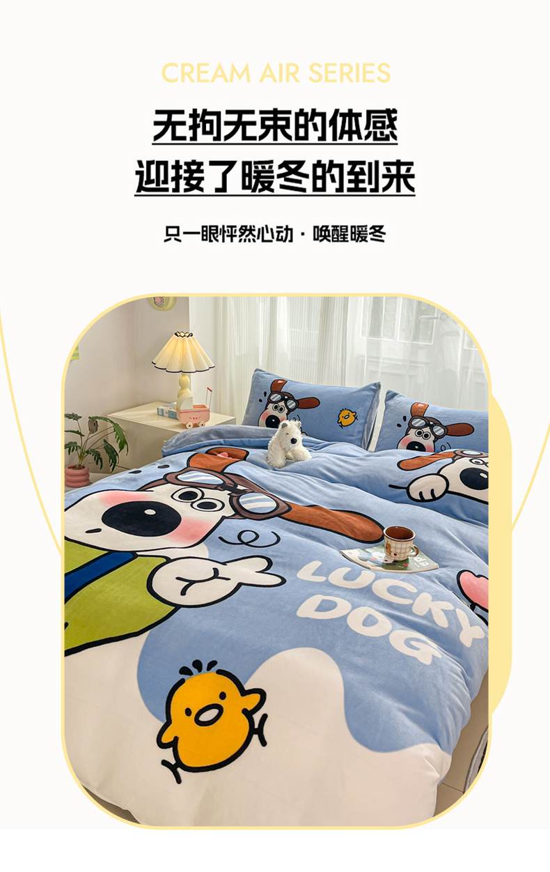 (总)喜梦缘 2025新款毛巾绣牛奶绒单被套 牛奶绒单床笠 牛奶绒四件套,东风5C,恰恰狗,小女孩,组合图,可爱兔兔