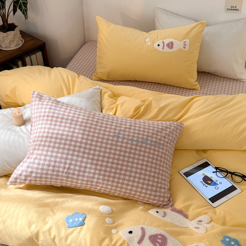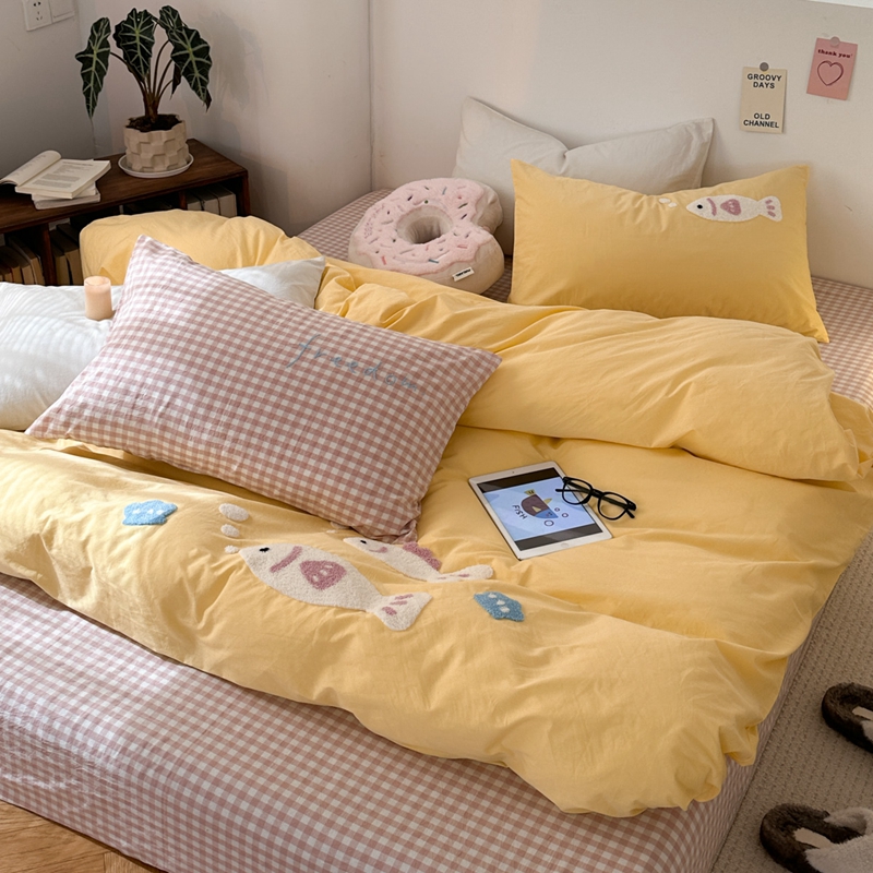 (总)洋铭区 2023新款色织水洗棉格子四件套,牛油果格,青桃格,山竹格,香橙格