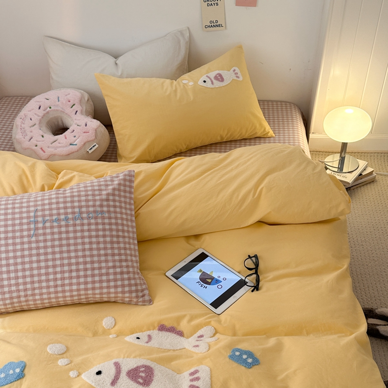 商品名称:洋铭区(原狠狠爱)2024新款水洗棉毛巾绣四件套 逍遥鱼儿