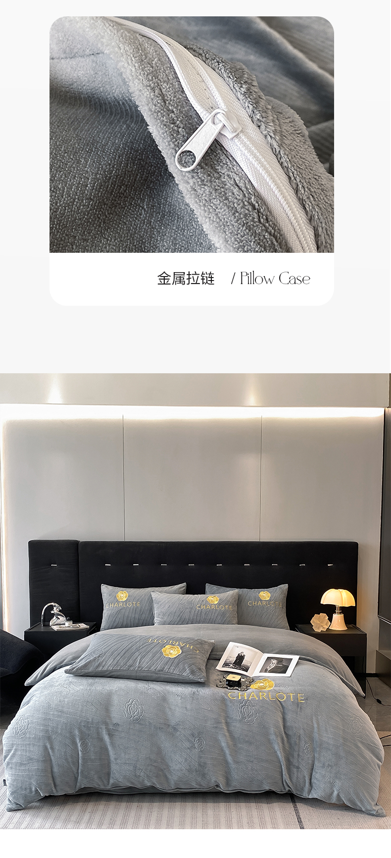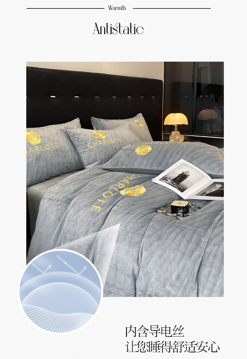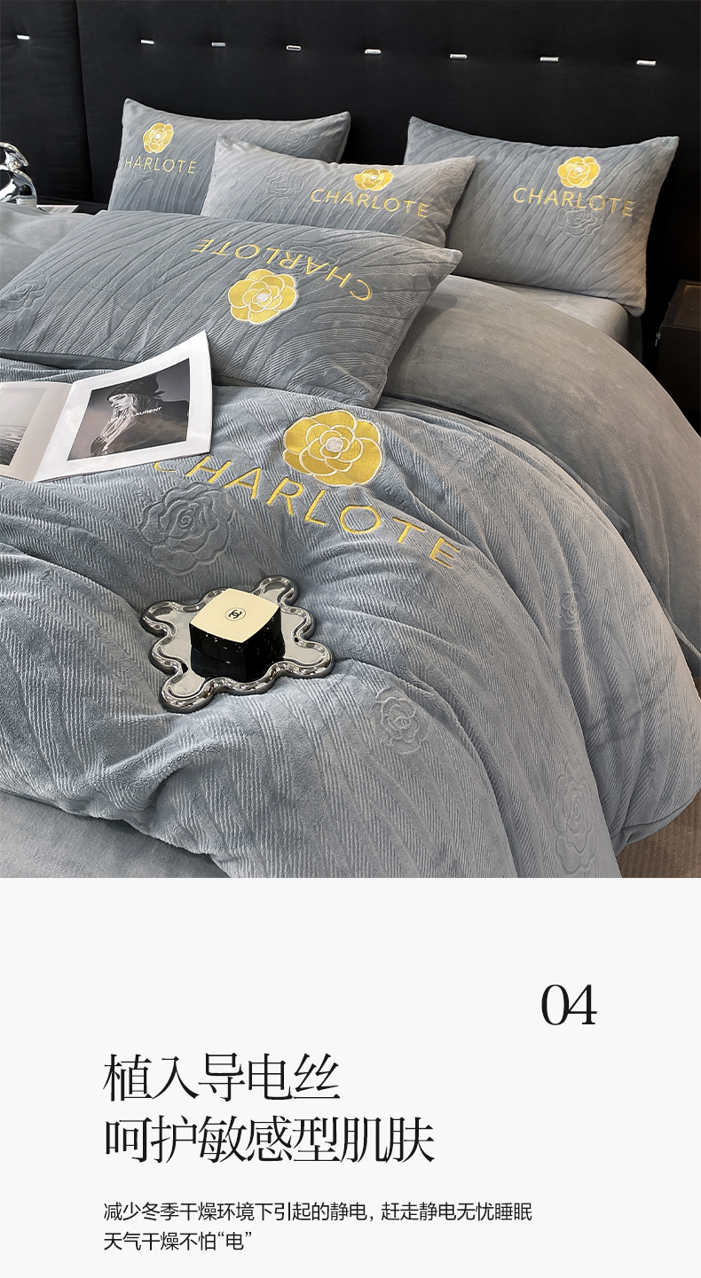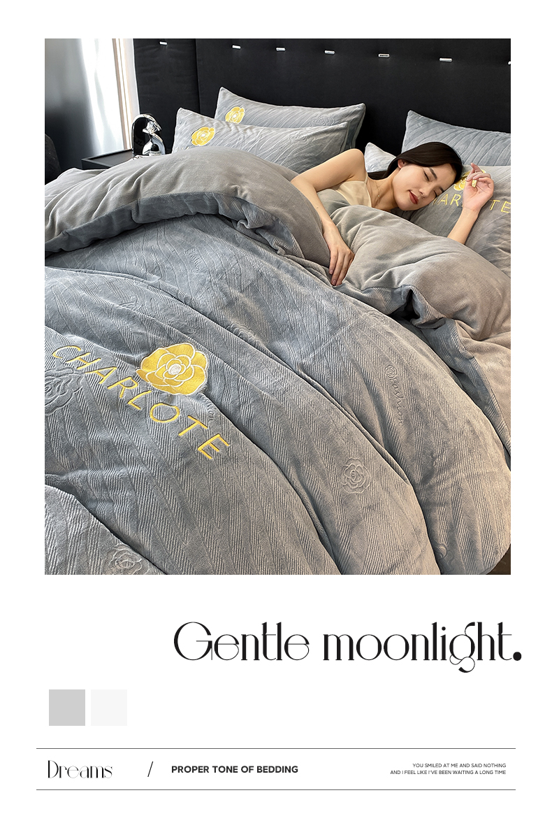 当前位置: 91家纺网 > 商品网购 > 床品套件 > 四件套 > 牛奶绒四件套 > 2024新款牛奶绒雕花轻奢刺绣三件套四件套 瑞丽浅灰