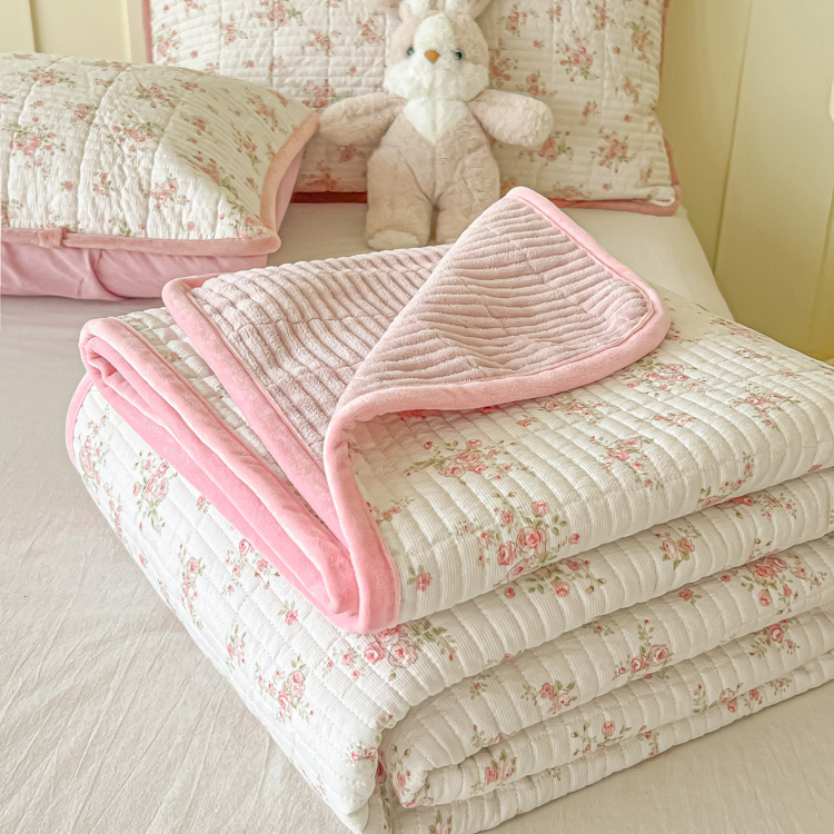 玉海棠 玉海棠 2024新款针织棉加绒床盖 相思-米