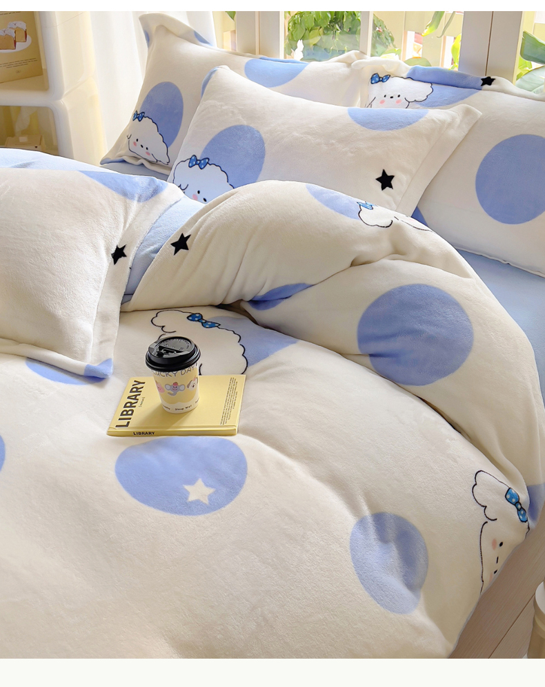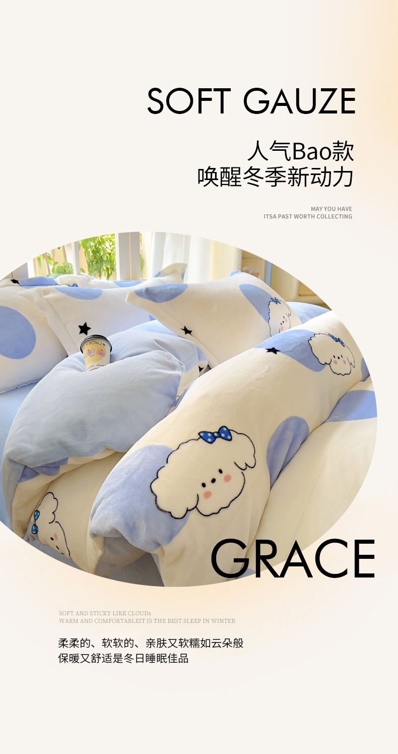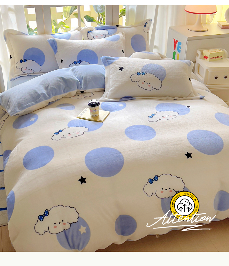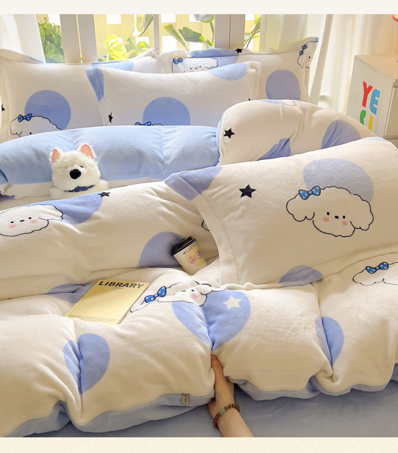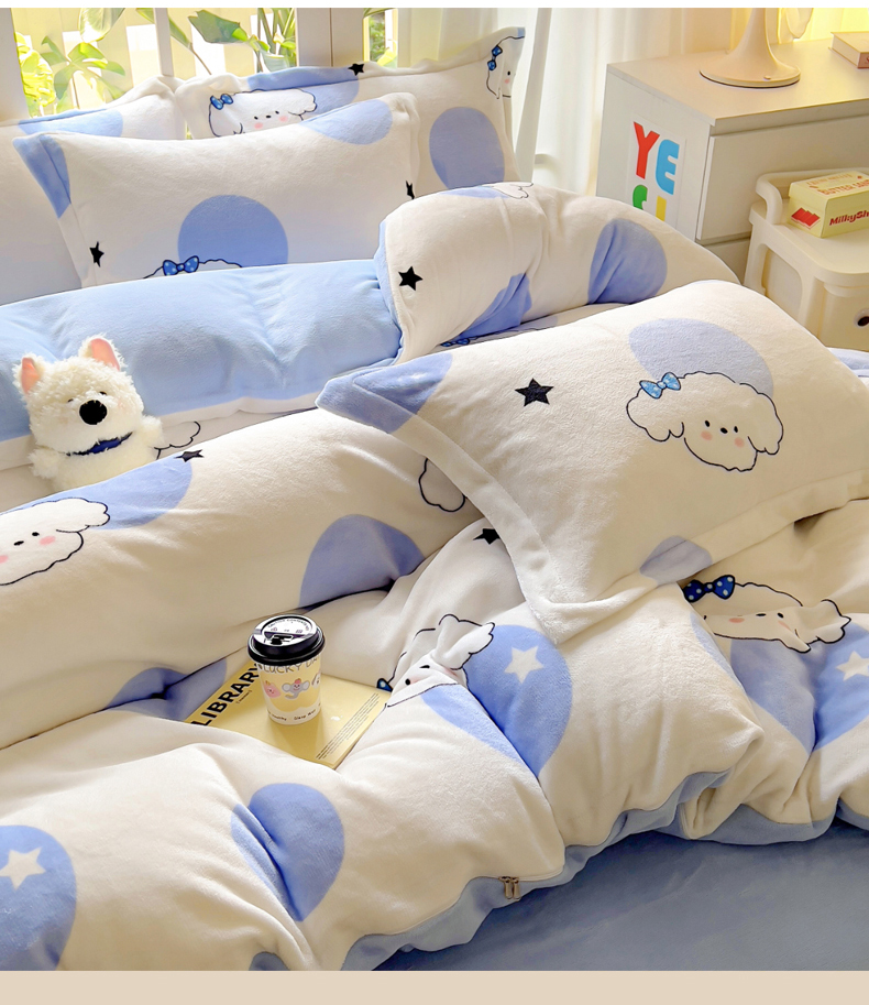 当前位置: 91家纺网 > 商品网购 > 床品套件 > 四件套 > 牛奶绒四件套 > 丝羽坊 2024新款加厚小清新牛奶绒印花四件套单被套床笠四件套-场景二 萌宠